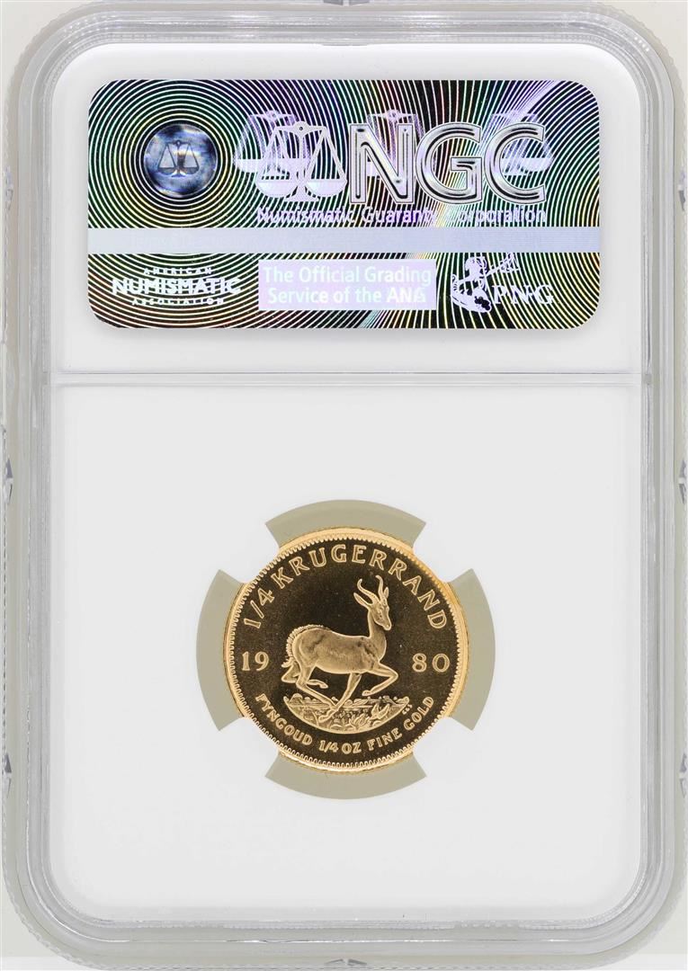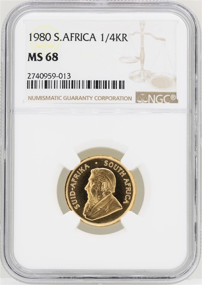 One 1980 South Africa 1/4 Krugerrand Gold Coin NGC MS68. NGC Certified.