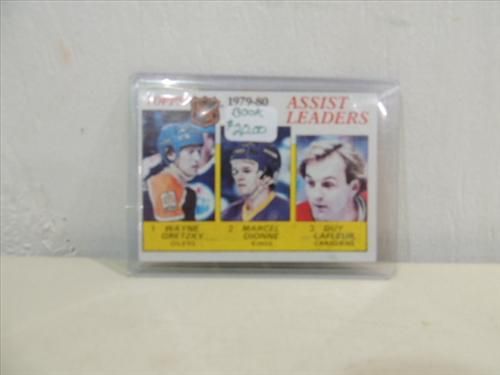 1980 TOPPS #162 HOCKEY ASSIST LEADERS CARD: GRETZKY, DIONNE & LAFLEUR. AS SHOWN. VIEW PICTURE FOR DETAIL.