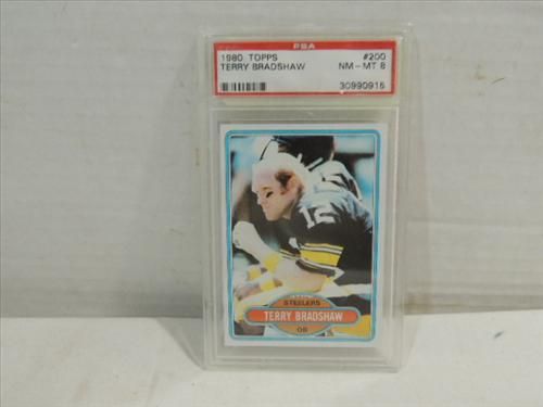 1980 TOPPS #200 GRADED FOOTBALL CARD TERRY BRADSHAW. GARDED PSA NM-MT 8. AS SHOWN. VIEW PICTURE FOR DETAIL.