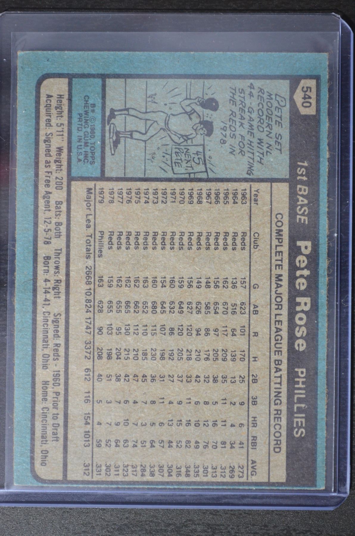 1980 Topps #540 Pete Rose