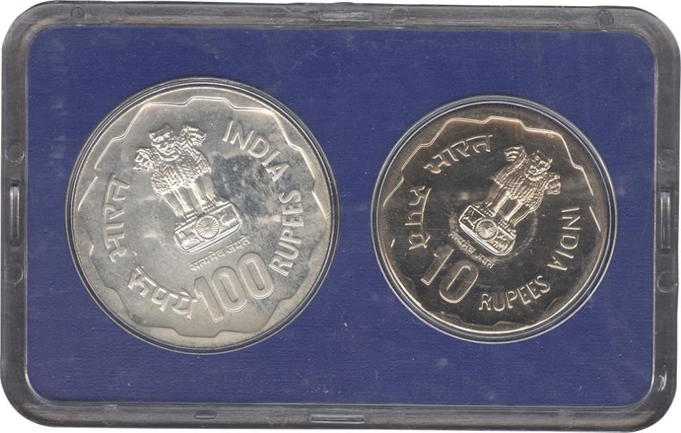 1980, UNC Set,Rural Womenss Advancement,10 Rupees and 100 Rupees,BombayMint,(RB # 80),intact condition of the certificate with acrylic case with slight damage on the outer cover.