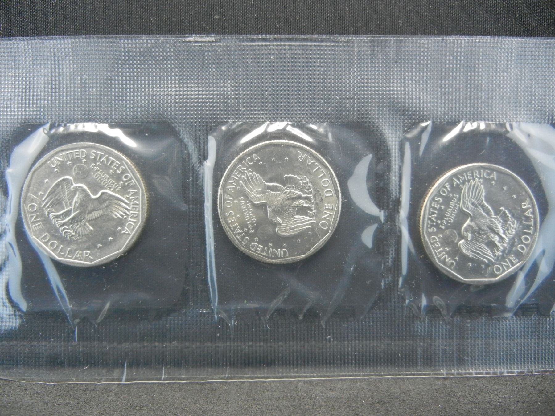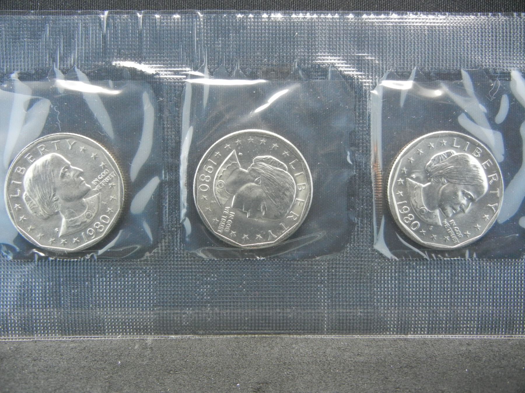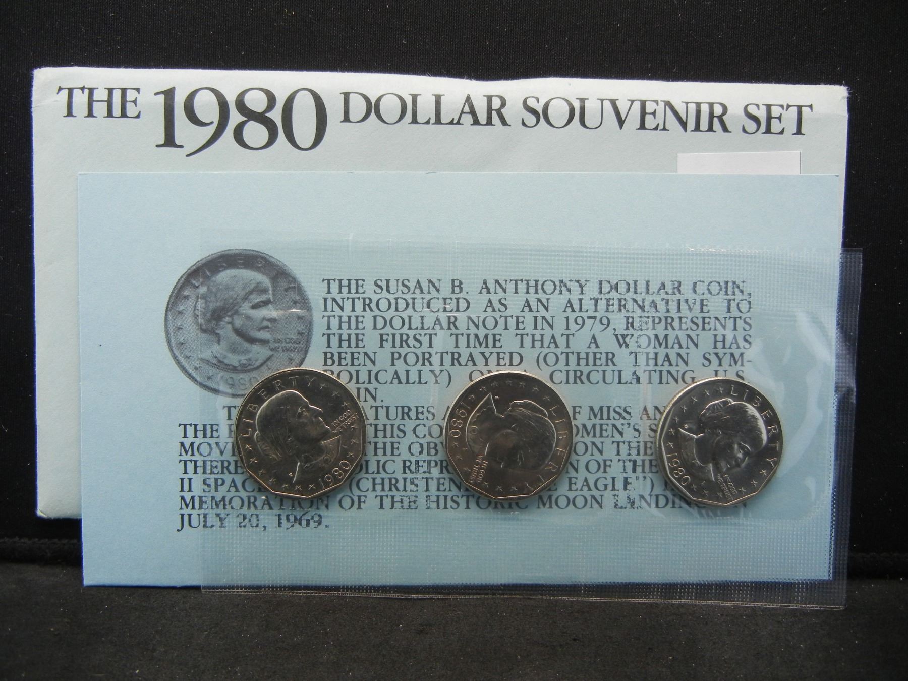 1980 United States Susan B. Anthony 3 Coin Dollar Set w/ Original Packaging
