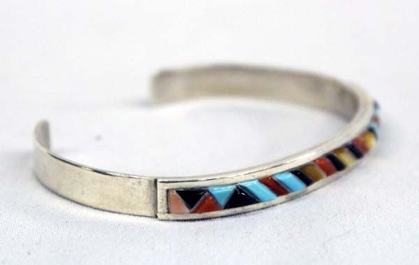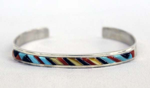 Zuni Sterling Silver Overlay Stone Bracelet by Valentino & Matilda Banteah , measures 6 3/8'' inside measurement includes space, 1/4''W & weighs 12.4, Artists' Bio: Valentino Banteah (1955- ) and Matilda Banteah (1955- ) Husband-and-wife team Valentino and Matilda Banteah have been producing overlay inlay jewelry since 1973. He does the silverwork, while she does the stonework. Valentino is the brother of Albert Banteah. Valentino and Matilda sign their work VMB.