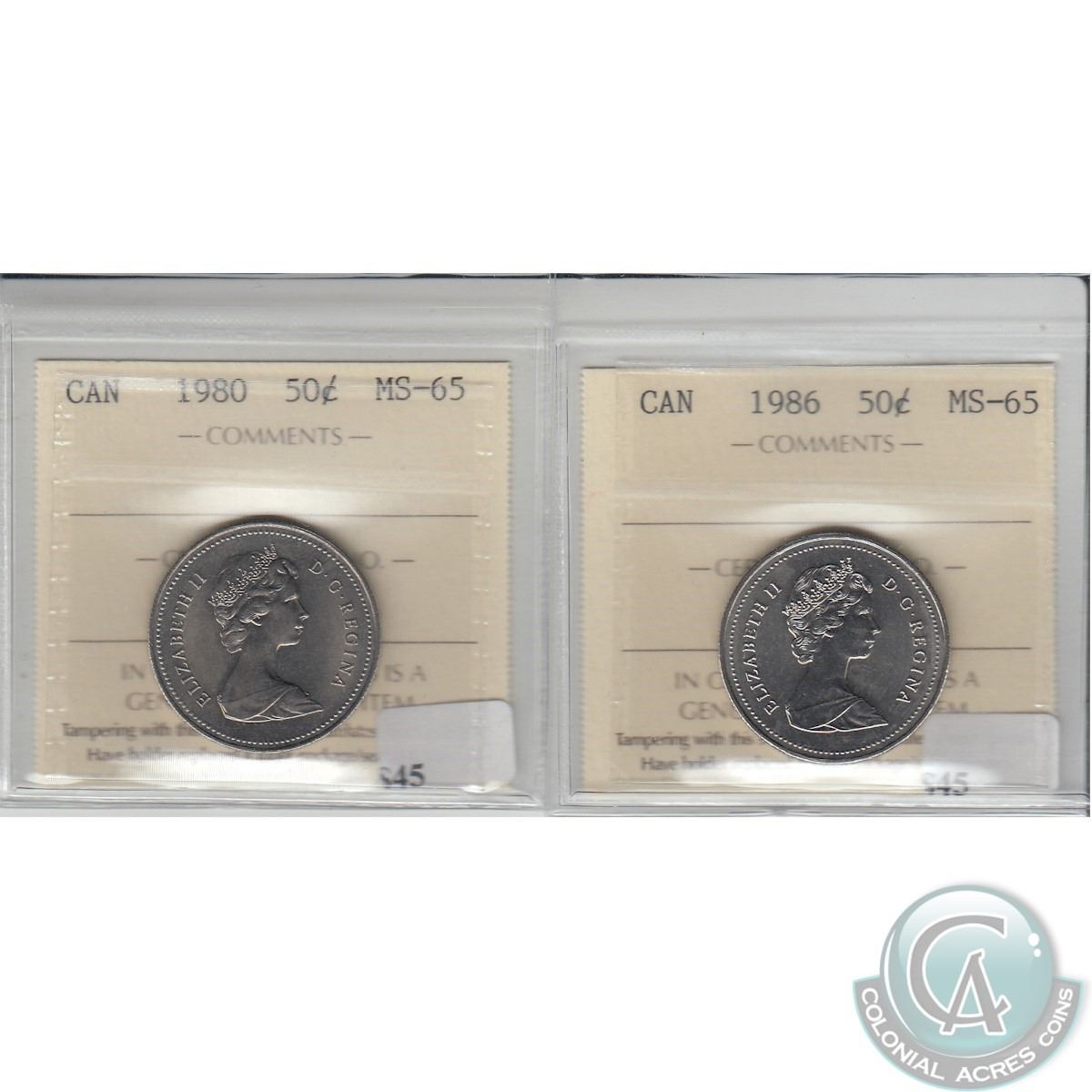 1980 and 1986 Canada 50-cent both ICCS Certified MS-65 (2pcs)