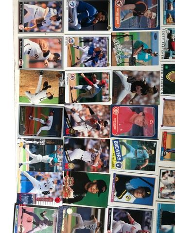 Approx 140 baseball cards filled with donruss, score, Topps, Leaf, late 80s to 90s