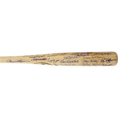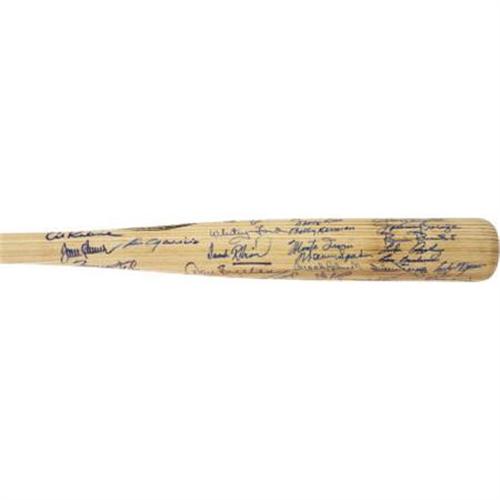 <B>1980's-90's Hall of Famers Multi-Signed Bat with Ted Williams.</B></I> Hundreds of miles of driving and dozens of hours of waiting in lines at autograph shows can be saved for the cost of one winning bid upon this special Louisville Slugger signed by thirty-seven members of Cooperstown's illustrious brotherhood. Names like Ted Williams, Mathews, Spahn, Drysdale, Stargell and Mize make this one impossible to replicate. Also here are Mays, Seaver, Kaline, Ford, McCovey, Musial, Gibson, Banks, Carlton, Palmer, Killebrew, Snider, Brooks and Frank Robinson and Berra, to name a few. Only Boudreau, Rose and Tommy John (not included in count of thirty-seven) lack a plaque. There's still plenty of room left to add more, and any Hall of Famer would be honored to join these blue sharpie ranks. Signature quality is uniformly 9/10 or better, continuing the theme of greatness. <I>LOA from PSA/DNA. LOA from James Spence Authentication.</B></I><BR><BR><b>Shipping:</b> Bats, Clubs, Sticks, Swords, Rif (<a target="_blank" href="http://www.heritageauctions.com/common/shipping.php">view shipping information</a>)