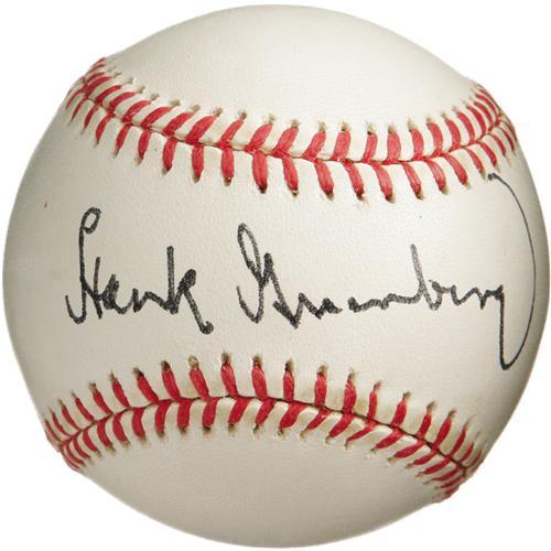 <B>1980's Hank Greenberg Single Signed Baseball.</B></I> "Class tells," Jackie Robinson once said, "It sticks out all over Mr. Greenberg." Surely Robinson was remembering the fact that Greenberg was one of the very few opposing ballplayers to welcome him into the League in 1947, and today Greenberg is celebrated for his bravery and dignity almost as much as for his thunderous bat. Here we present a fine example of a rare Greenberg single, signed on an OAL (Brown) ball shortly before his passing in 1986. The black ink sweet spot signature rates a bona fide 10/10, and the ball shows only light, inconsequential toning. An essential component of any high-end autograph collection. <I>LOA from PSA/DNA. LOA from James Spence Authentication.</B></I><BR><BR><b>Shipping:</b> Balls, Pucks, etc., Small (<a target="_blank" href="http://www.heritageauctions.com/common/shipping.php">view shipping information</a>)