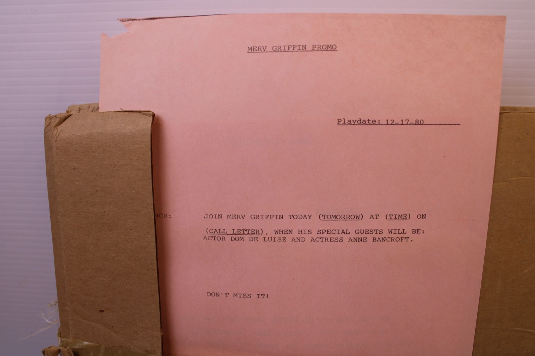 1980's Merv Griffin Radio Talk Show Record Set w/ Promo Papers