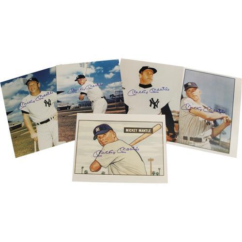 <B>1980's Mickey Mantle Signed Photographs Lot of 5.</B></I> A terrific dealer's lot, though the fact that each of the five signed images presented here is different makes it a neat grouping for collectors as well. Each 8x10" photo is blessed with a 10/10 blue sharpie signature from everybody's favorite Yankee. Photos are Mint. <I>LOA from PSA/DNA. LOA from James Spence Authentication.</B></I><BR><BR><b>Shipping:</b> Flat Material, Small (<a target="_blank" href="http://www.heritageauctions.com/common/shipping.php">view shipping information</a>)