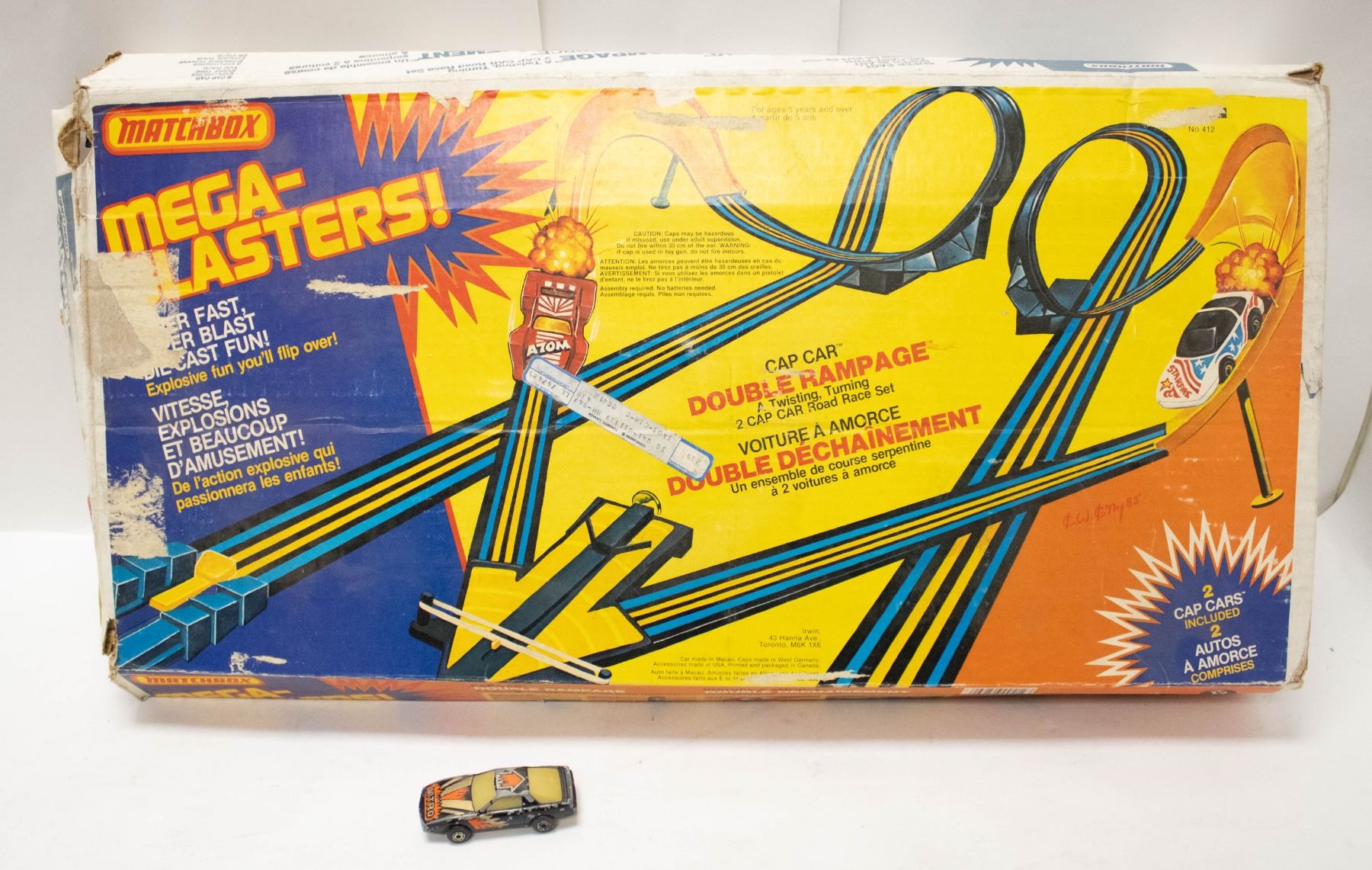 1980S MATCHBOX MEGA BLASTER TRACK SET W 2 CARS