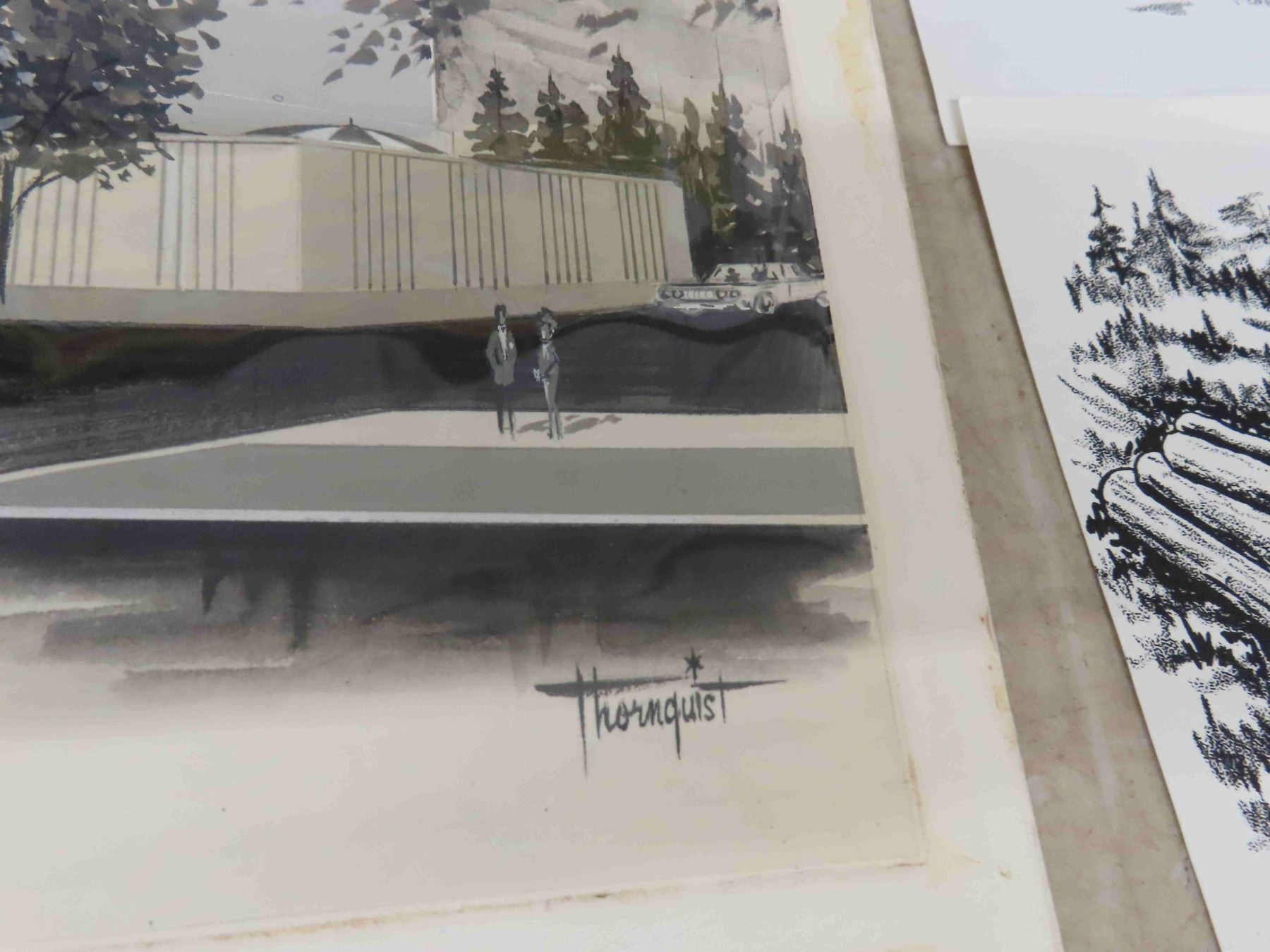 1980s Architecural Drawings and Tree Farmer Signed Oil