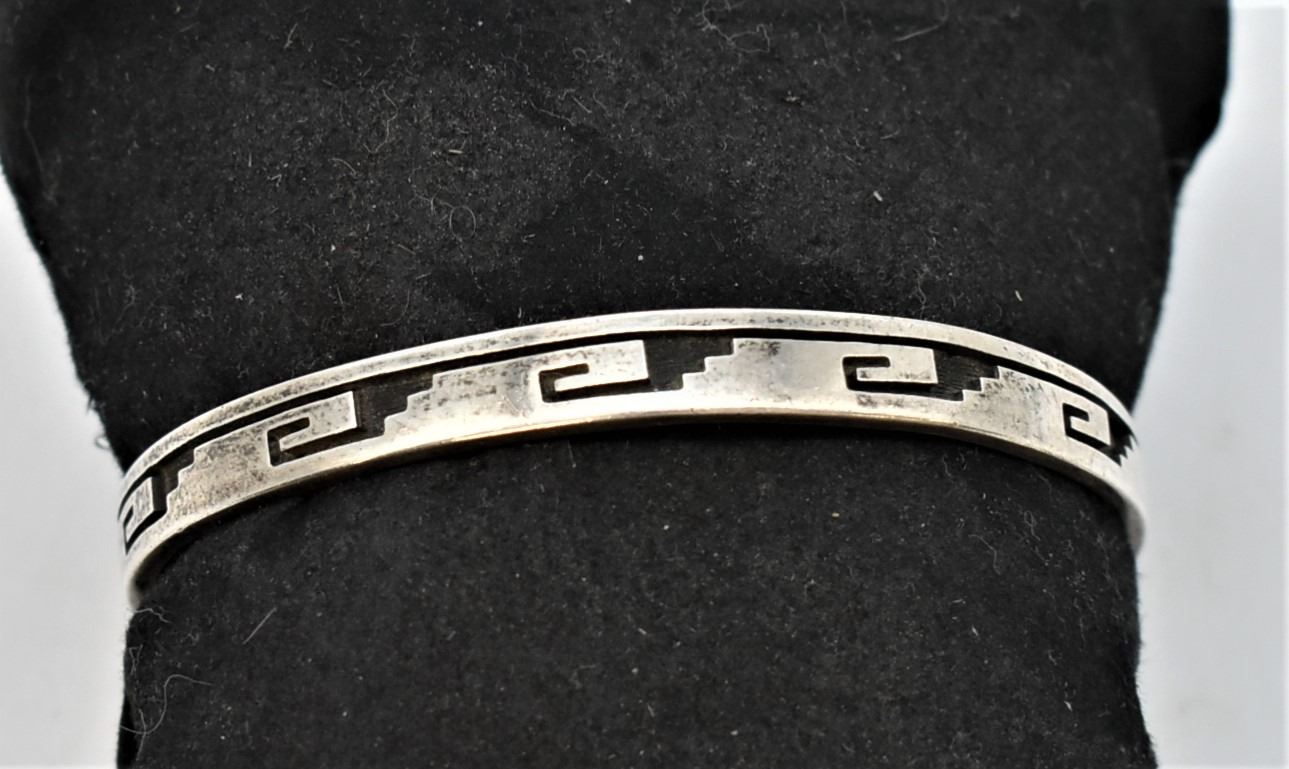 1980s Hopi Sterling Overlay Bracelet, Lomayestewa