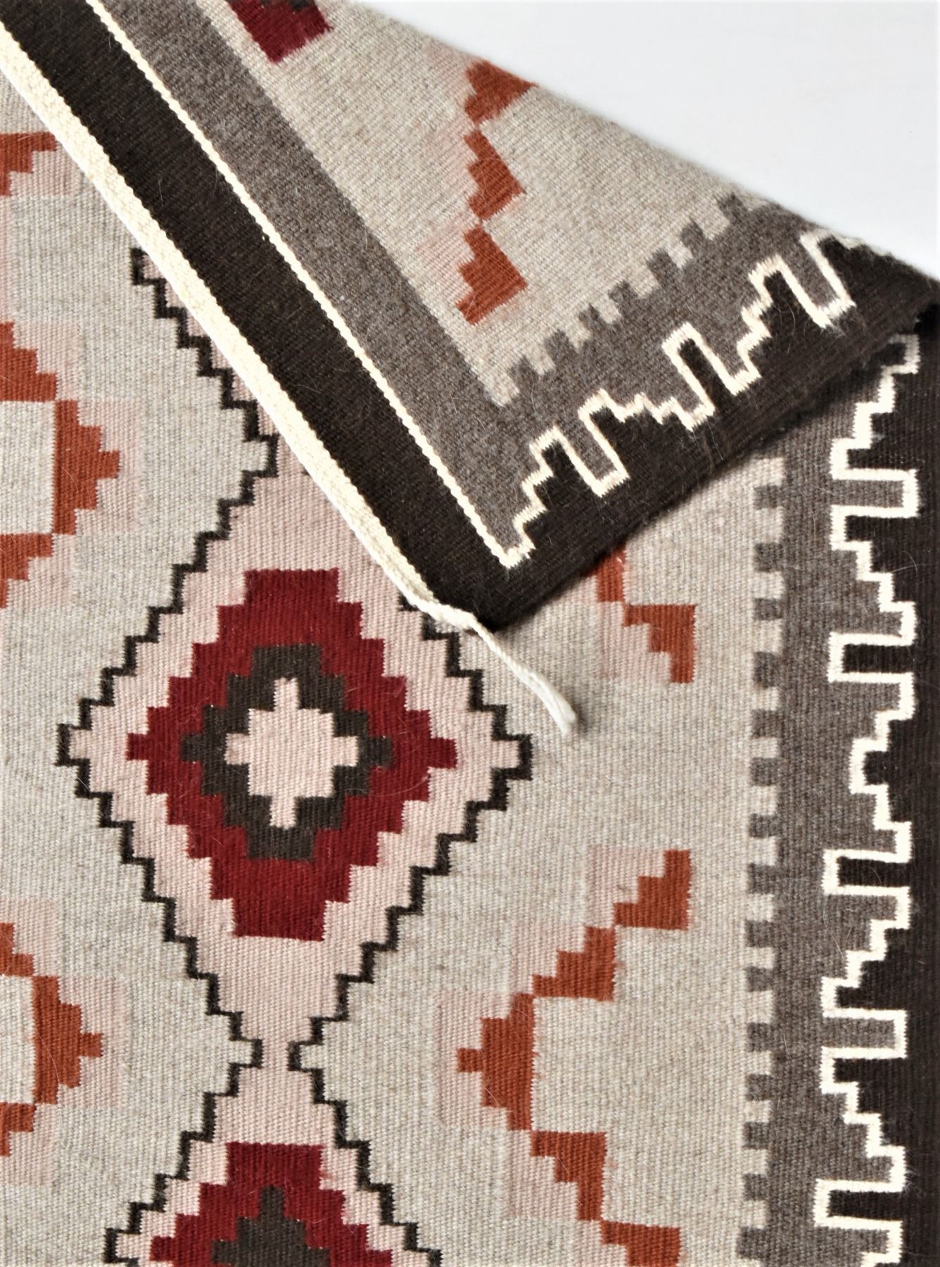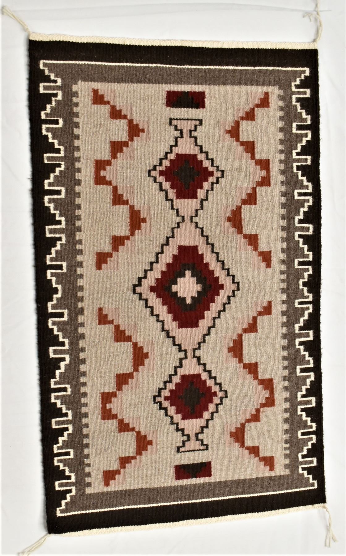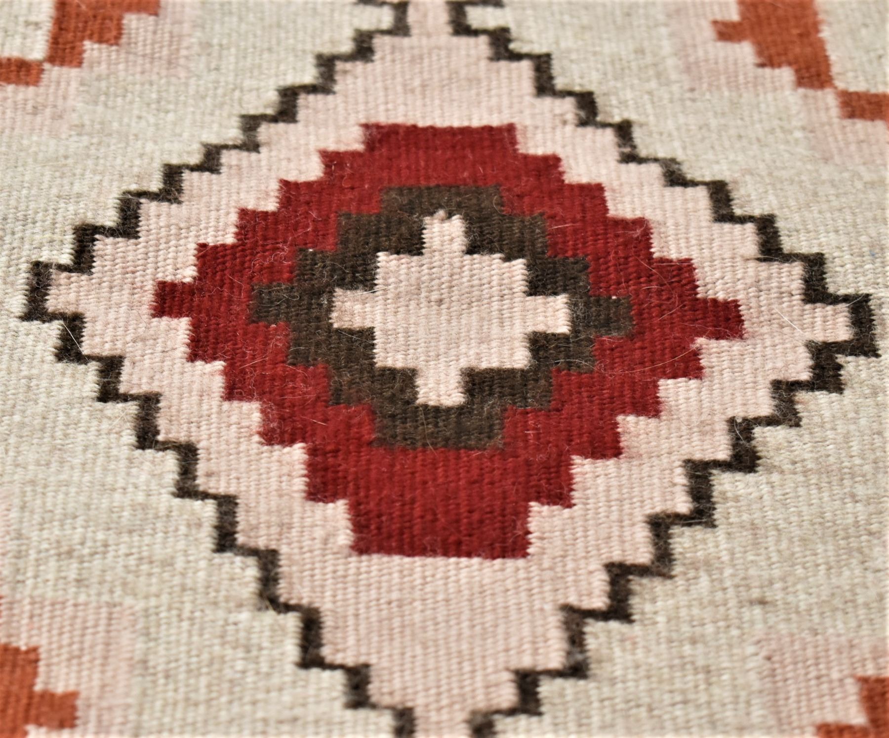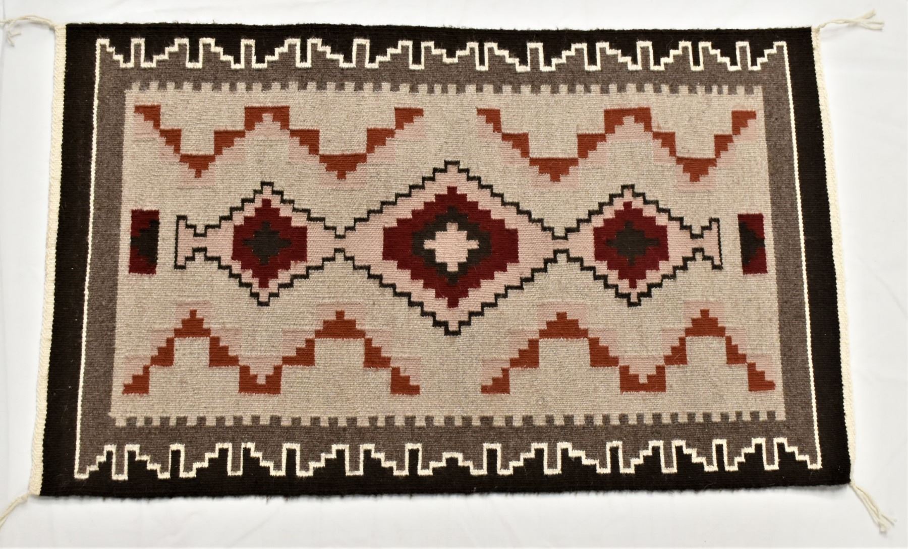 1980s Native American Navajo Wool Textile Rug, 4 cornered tassels intact, measures 22.5'' x 38'', nice tight weave, gorgeous colors, some bleeding, from the Canyon de Chelly Chinle, AZ area