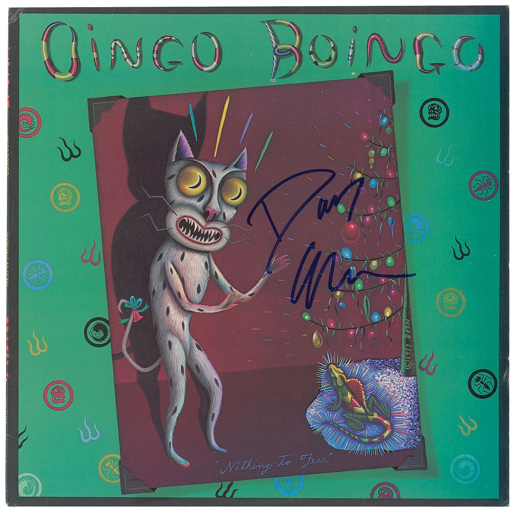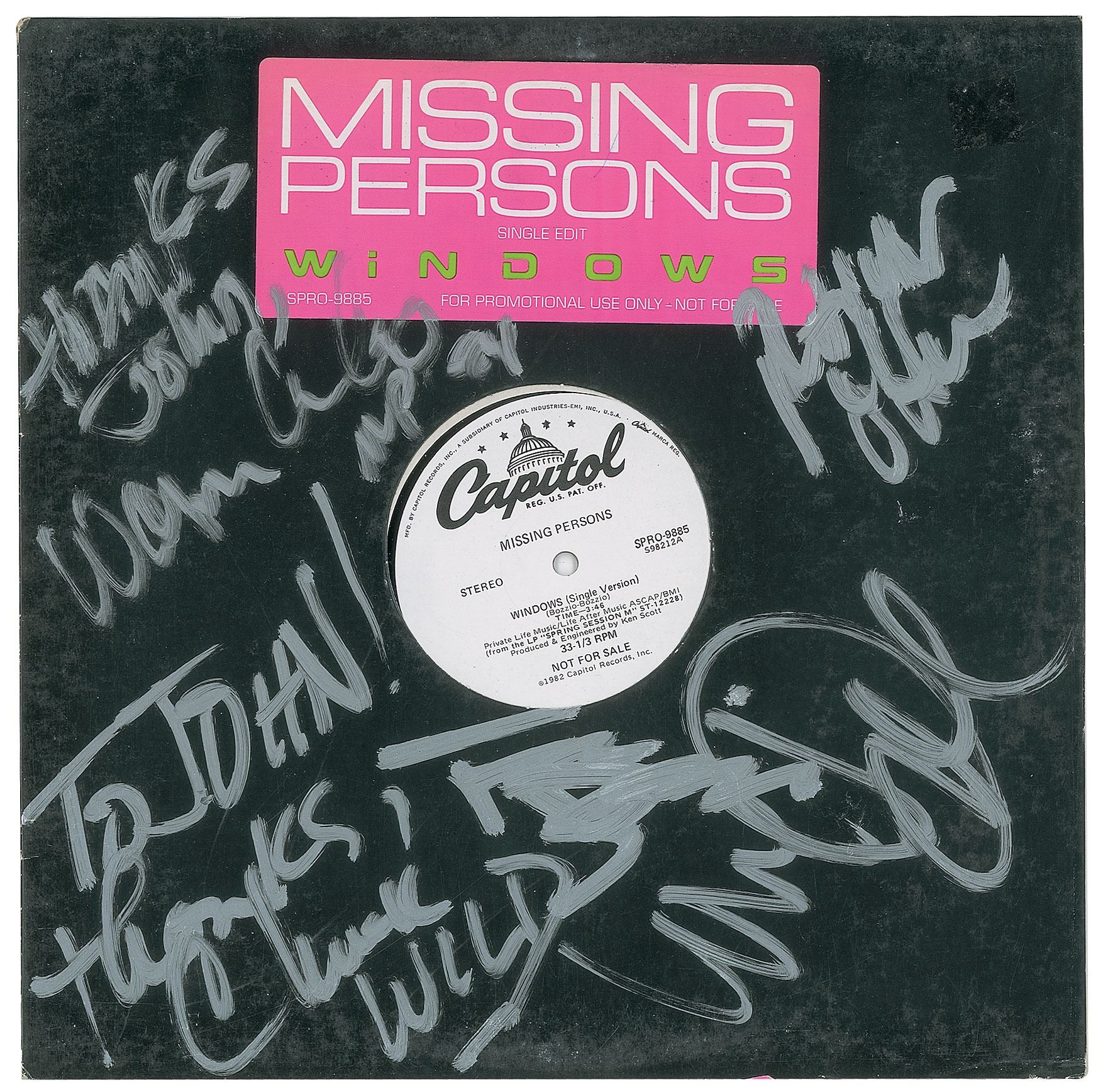Three albums signed by New Wave artists: Windows 12? promo single by Missing Persons, signed and inscribed on the sleeve in silver ink by Dale Bozzio, Terry Bozzio, Warren Cuccurullo, Chuck Wild, and Patrick O'Hearn; Nothing to Fear by Oingo Boingo, signed on the front cover in blue felt tip by Danny Elfman; and Heartbreak Beat by The Psychedelic Furs, signed on the front cover in black felt tip by Richard Butler, Tim Butler, and John Ashton. In fine condition. The records are included.