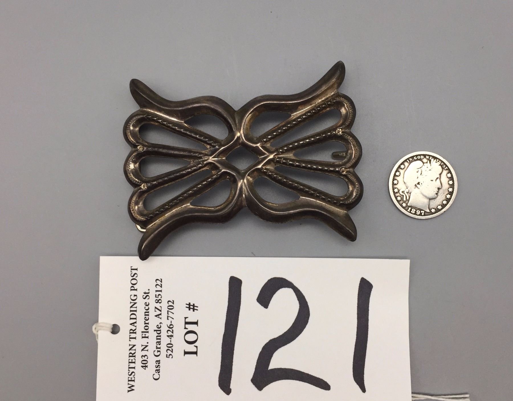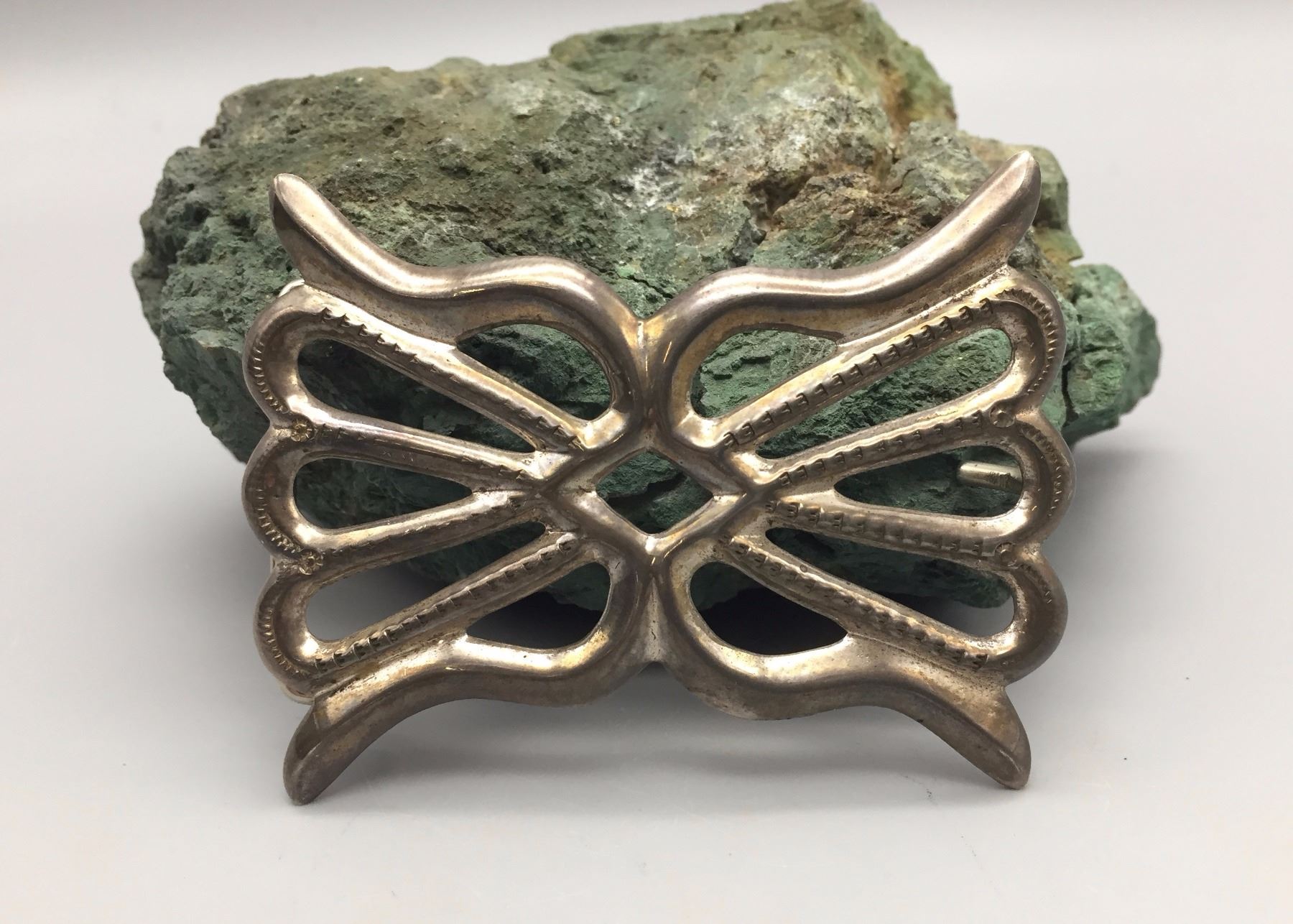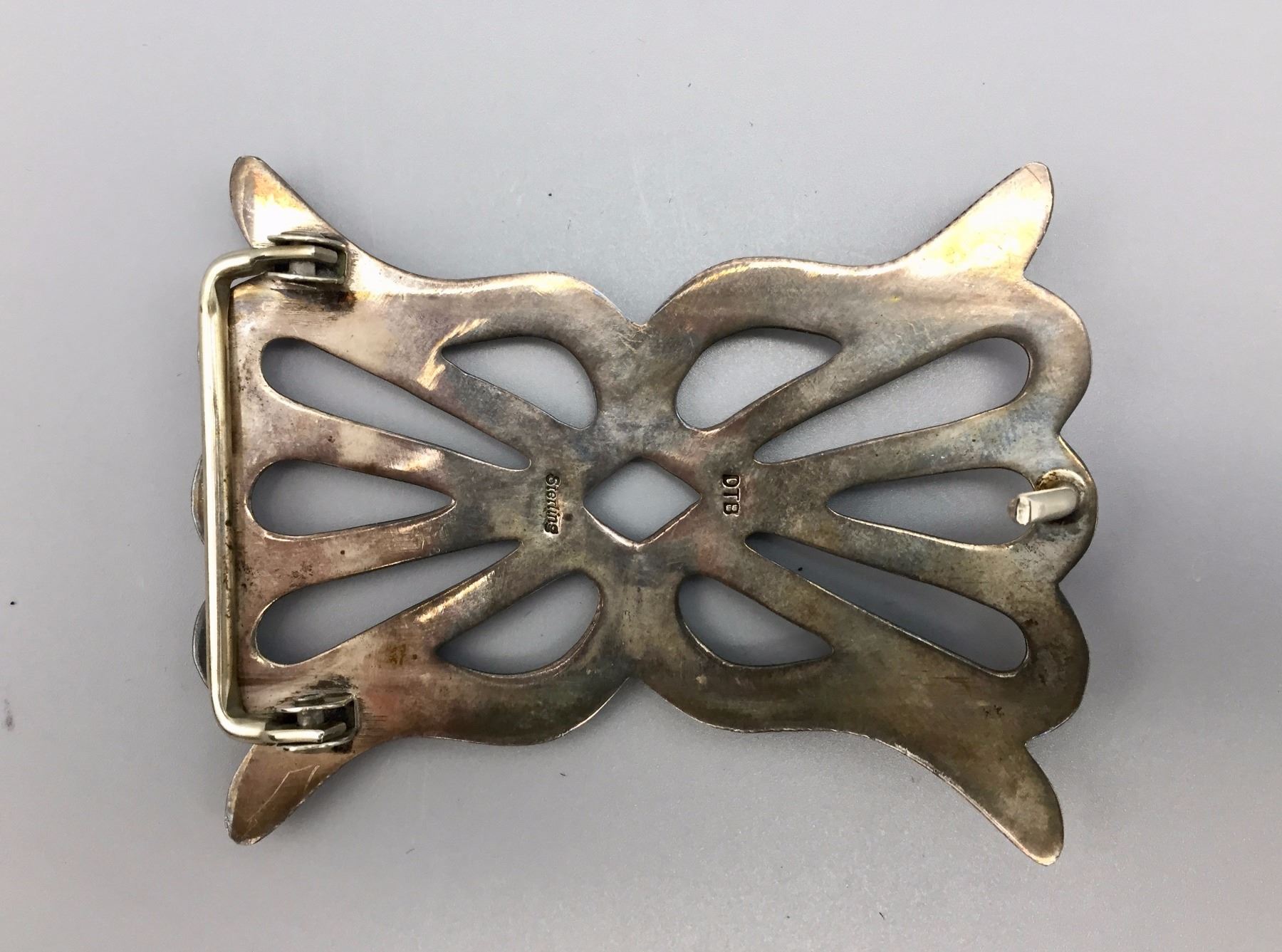 Maker: Hallmarked DTB, mark of Dene Tsosie Bini, Navajo. Approx. Age: Vintage, circa 1980s. Size: Measures 3 1/4” w x 2 1/2” h. Weighs 49g. Additional Info: Sterling silver sandcast belt buckle. Condition: Good for it’s age, normal wear expected. Please look closely at the pictures - they are an important part of our description. Shipping: There will be a $5 handling / packaging fee for shipping this lot. The actual cost of postage will be added on top of that.