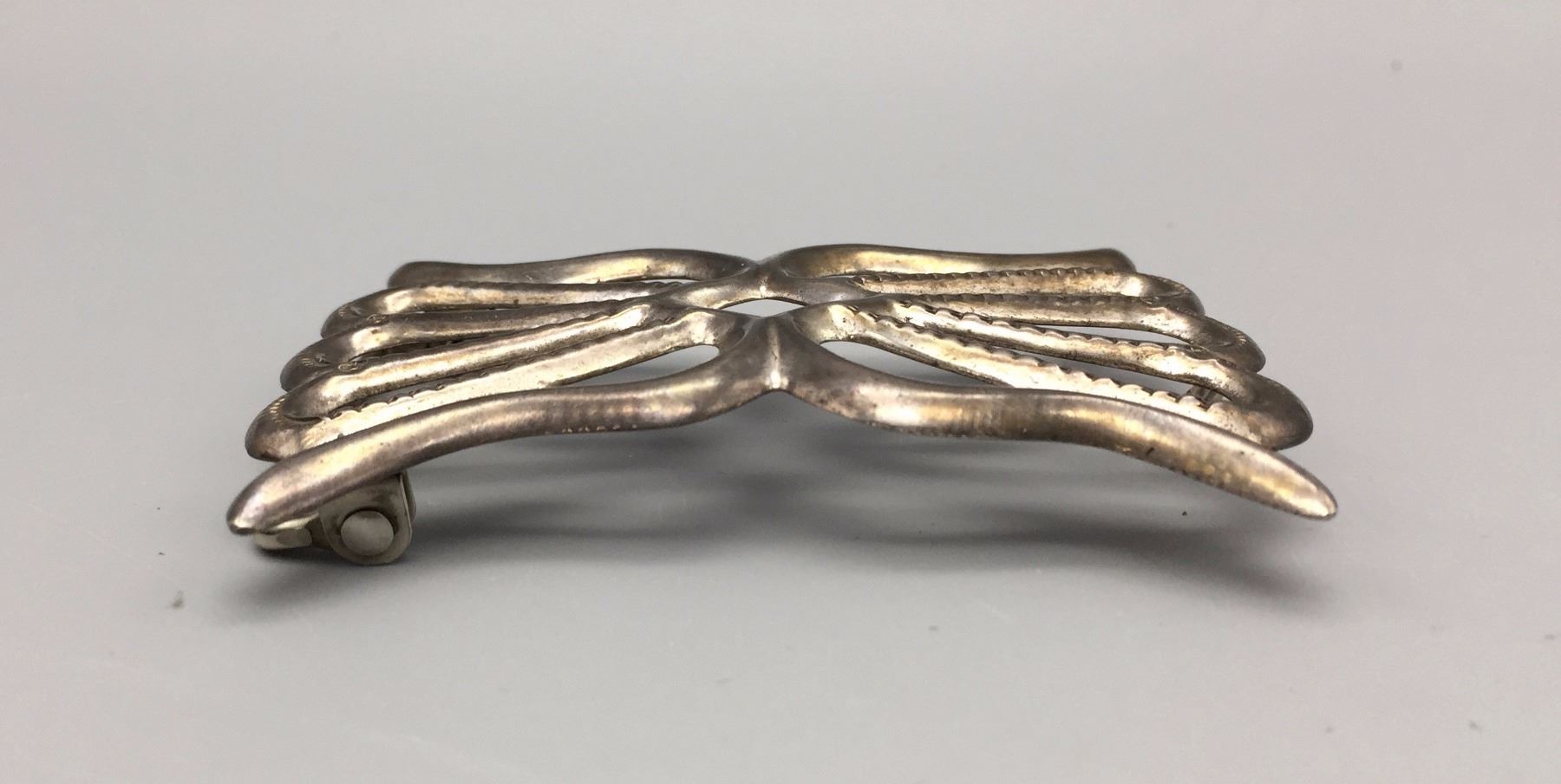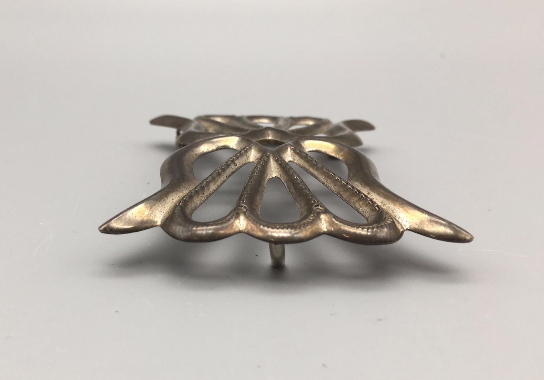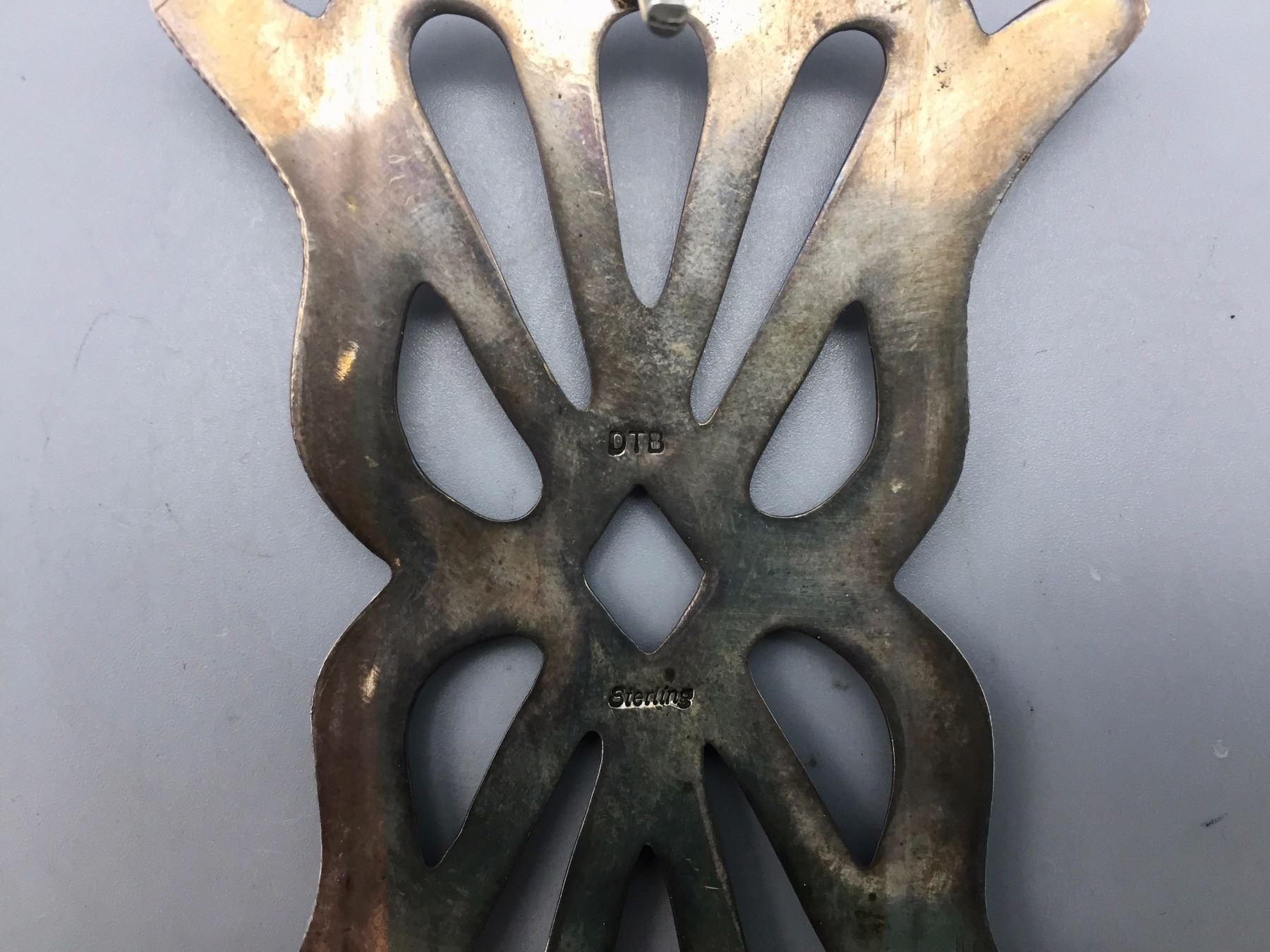 Maker: Hallmarked DTB, mark of Dene Tsosie Bini, Navajo. Approx. Age: Vintage, circa 1980s. Size: Measures 3 1/4” w x 2 1/2” h. Weighs 49g. Additional Info: Sterling silver sandcast belt buckle. Condition: Good for it’s age, normal wear expected. Please look closely at the pictures - they are an important part of our description. Shipping: There will be a $5 handling / packaging fee for shipping this lot. The actual cost of postage will be added on top of that.