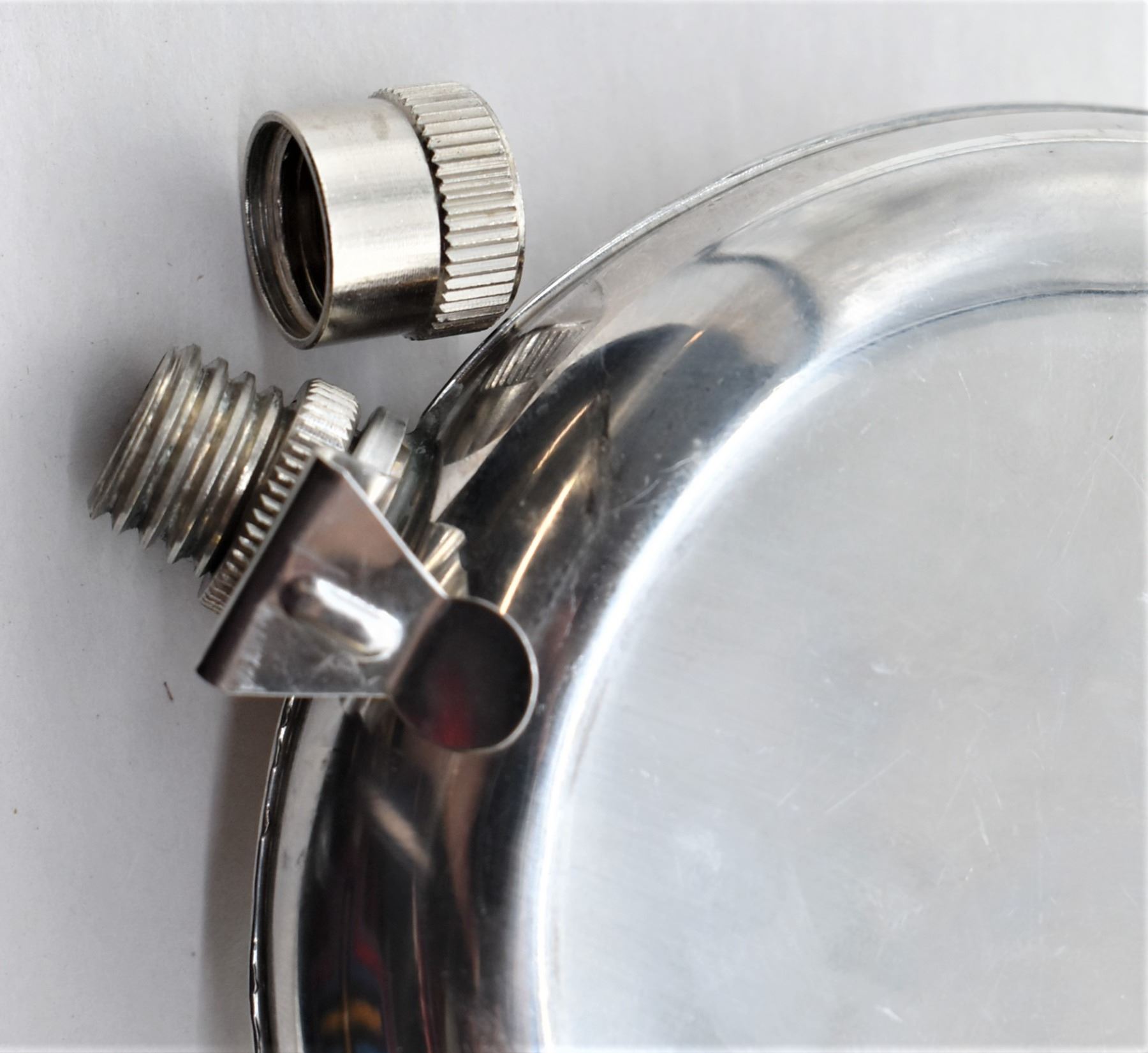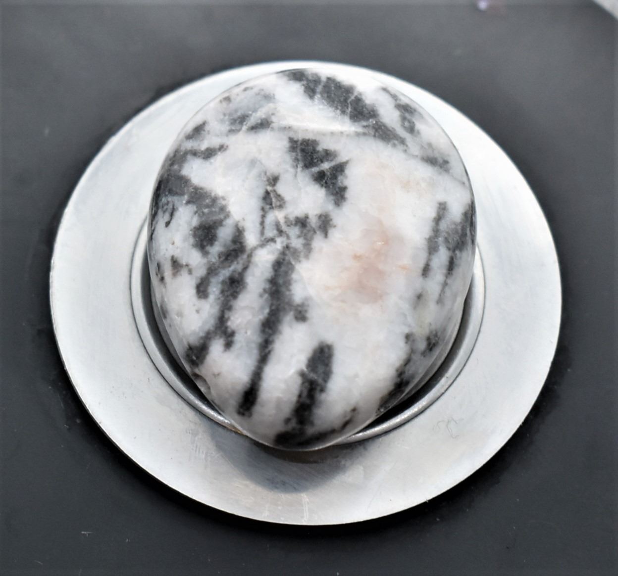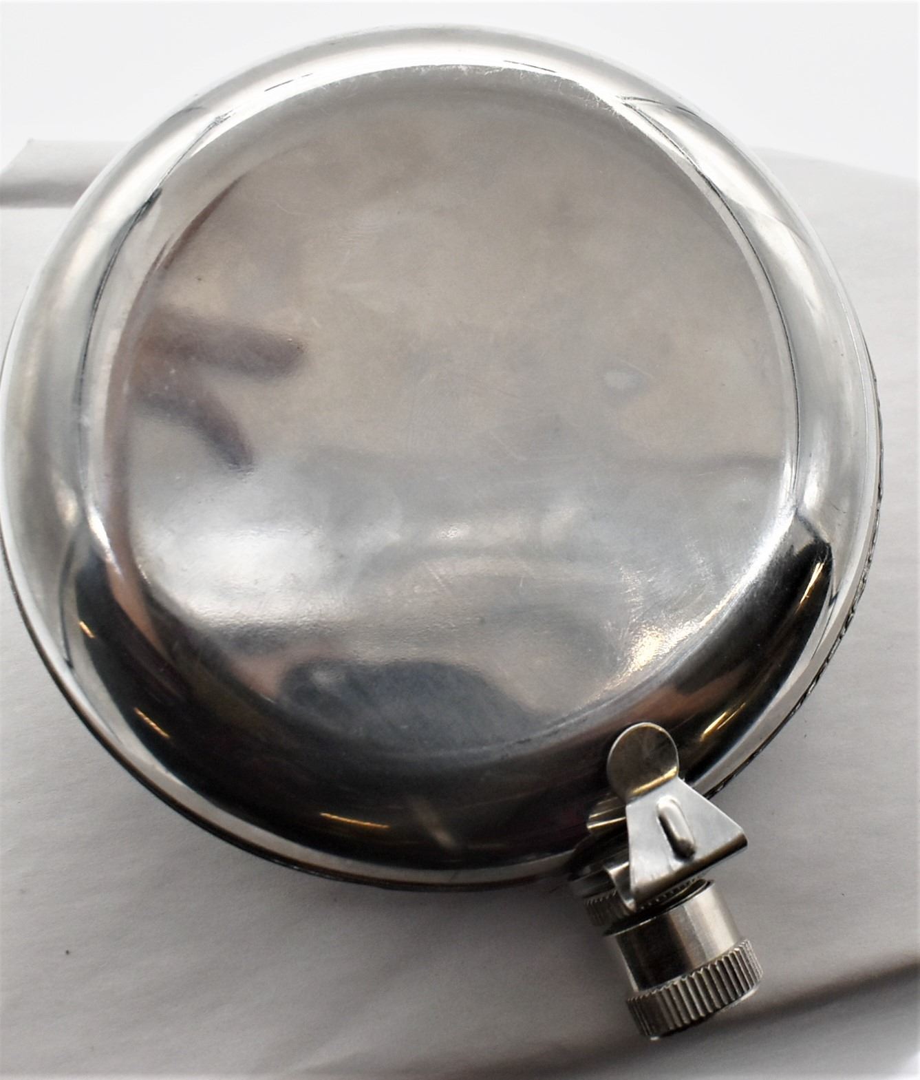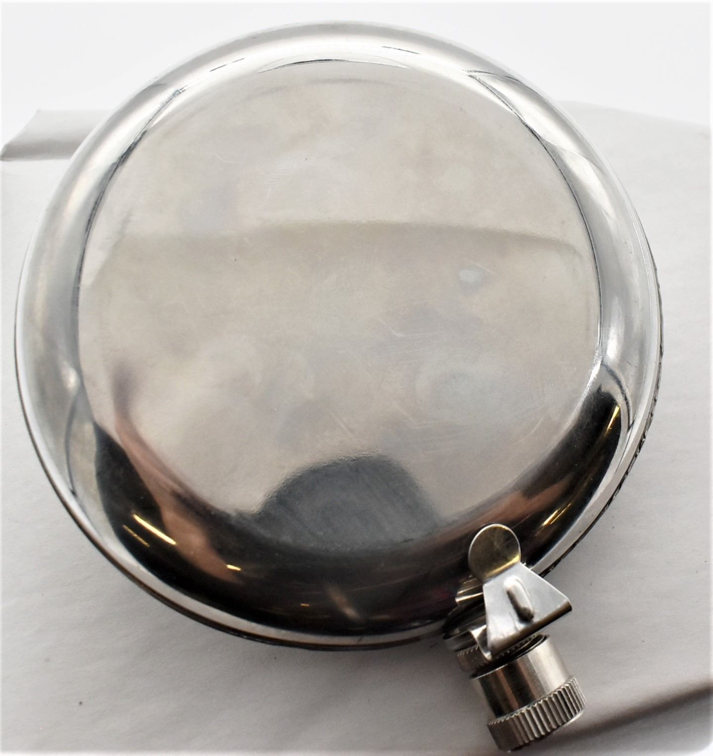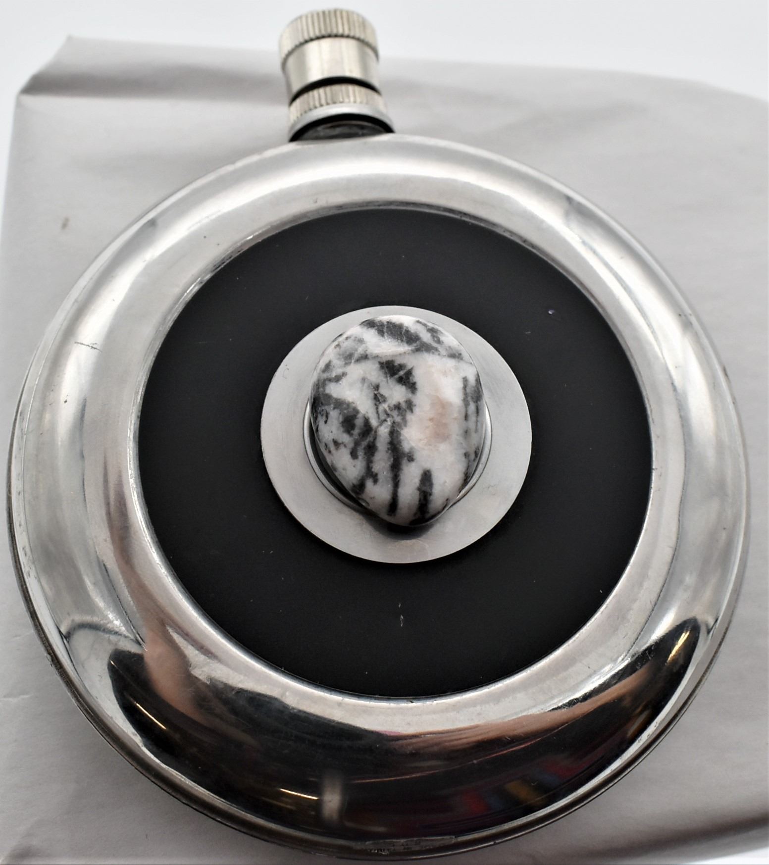 1980s Silver Tone Flask, measures 5.5''L x 4.5''D, embellished with dendritic cabochon
