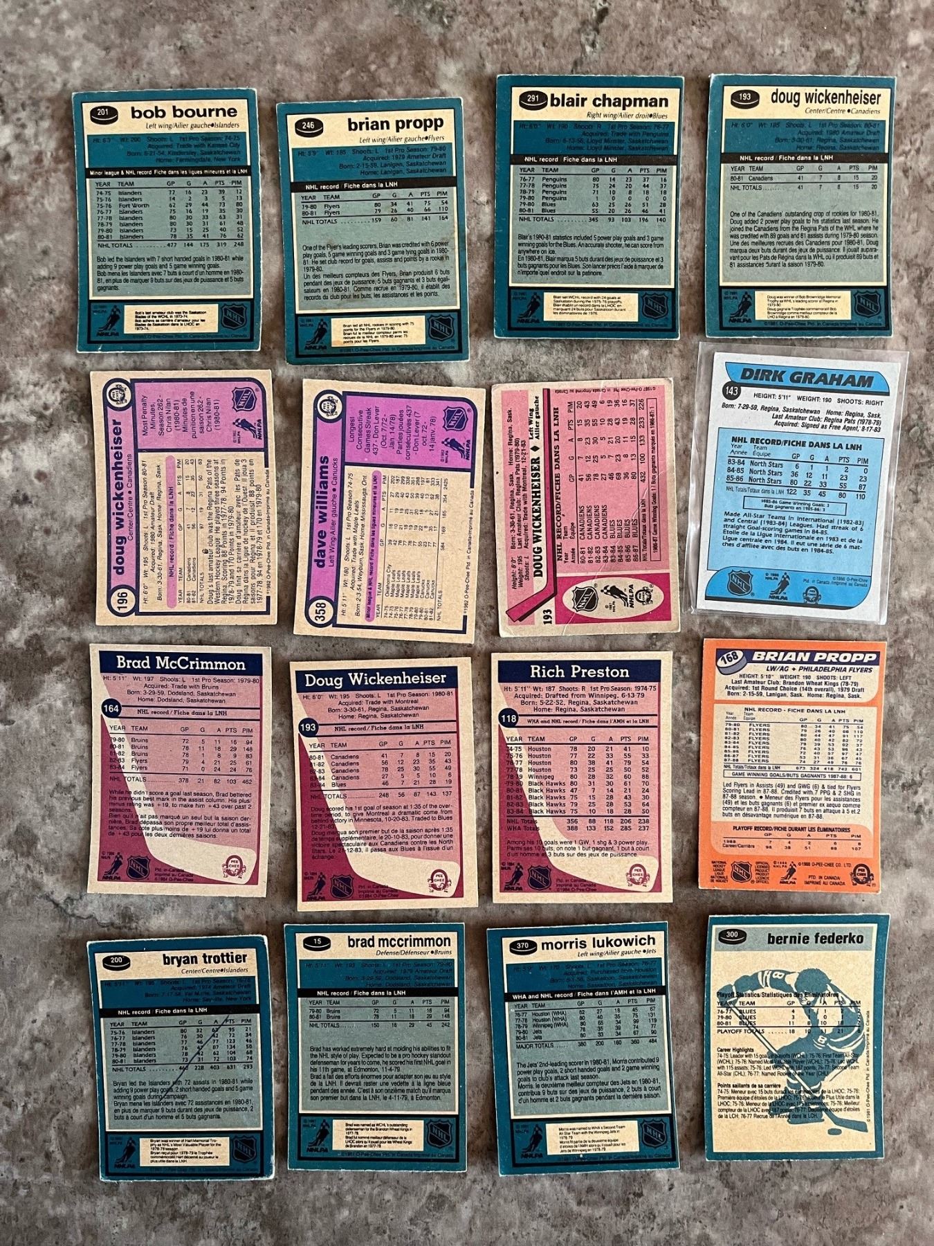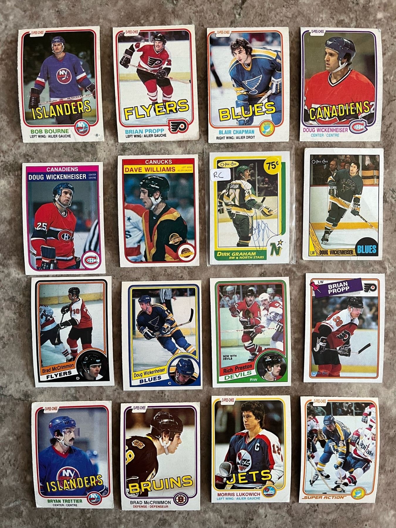 1980s lot of 16 O Pee Chee (OPC) hockey cards. All guys from Sask. Doug Wickenheiser. Tiger Williams.