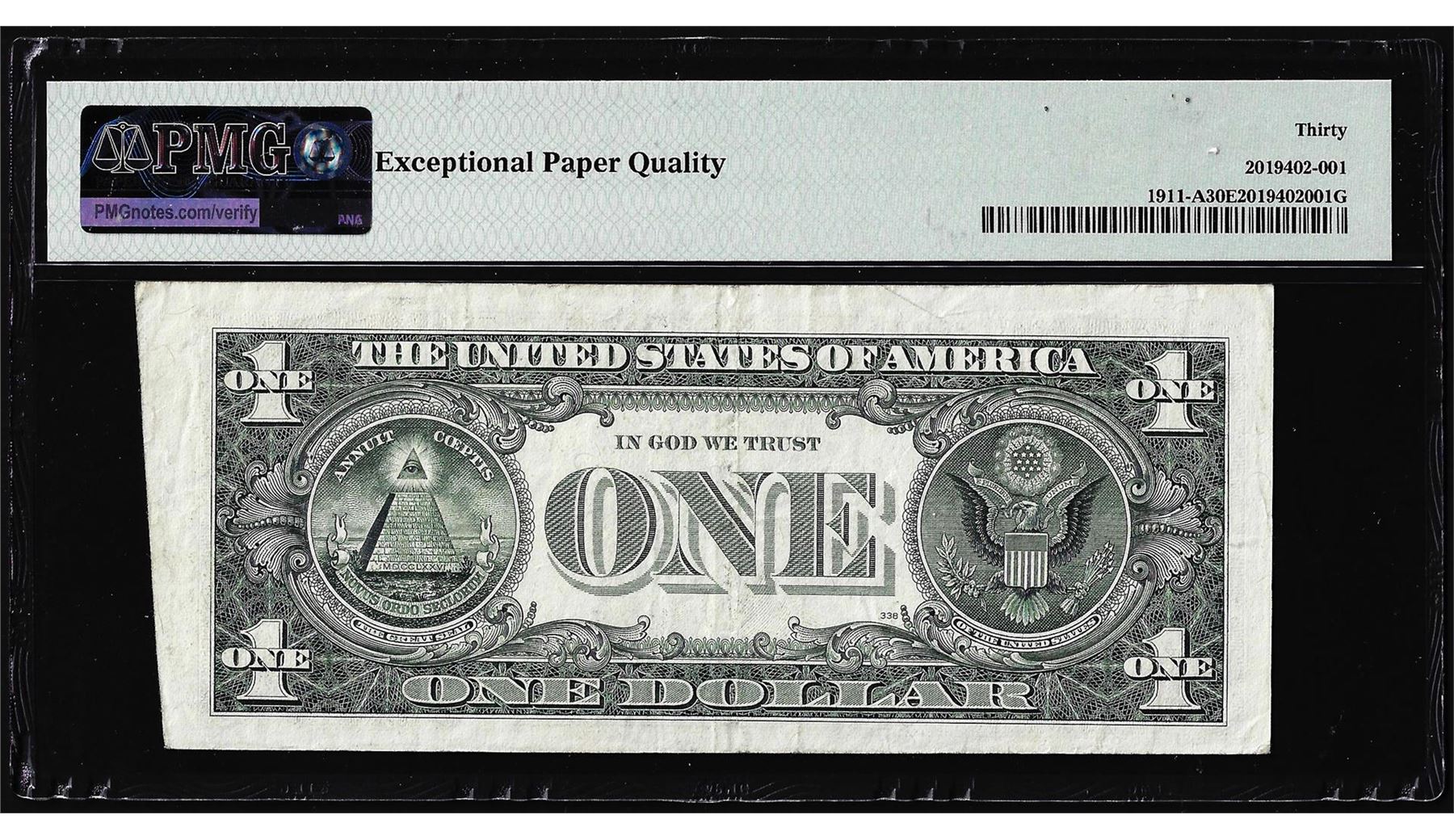 One 1981 $1 Federal Reserve Note Cutting Error Boston Fr.1911-A PMG Very Fine 30EPQ. PMG Certified.