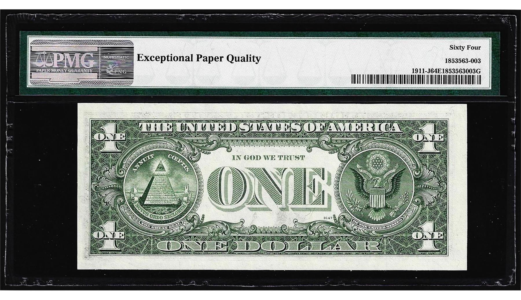 One 1981 $1 Federal Reserve Note ERROR Ink Smear Fr.1911-J PMG Choice Uncirculated 64EPQ. PMG Certified.