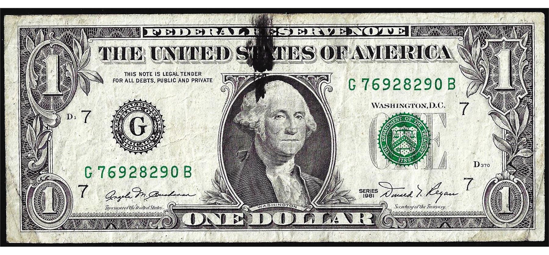 One 1981 $1 Federal Reserve Note Ink Smear Error.