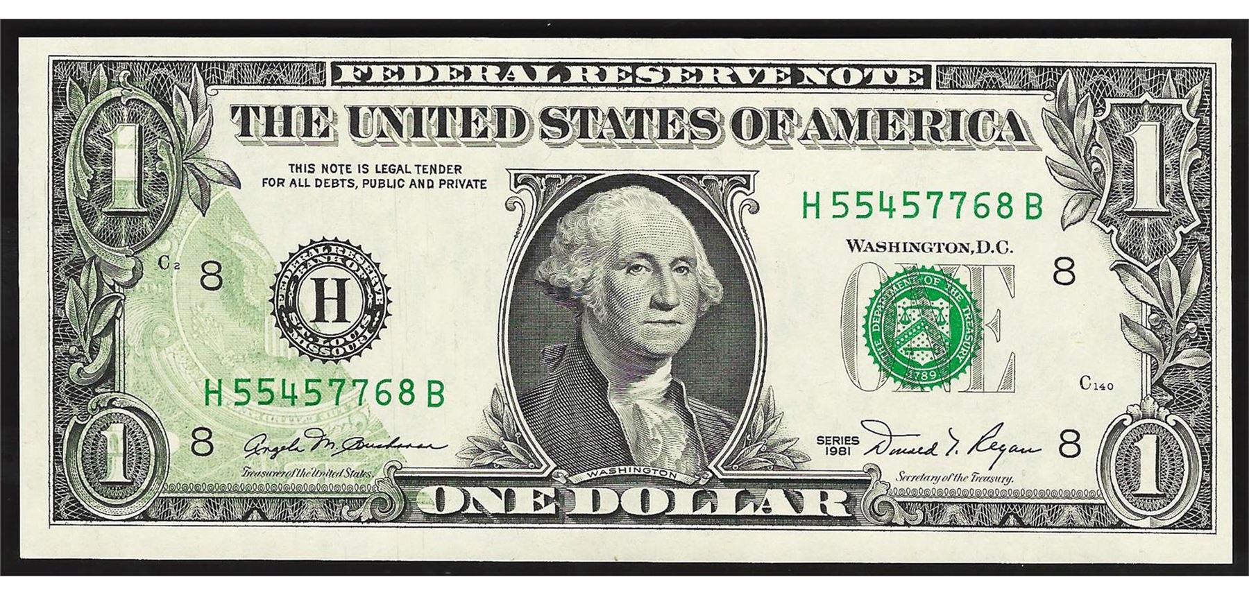 One 1981 $1 Federal Reserve Note Offset ERROR.
