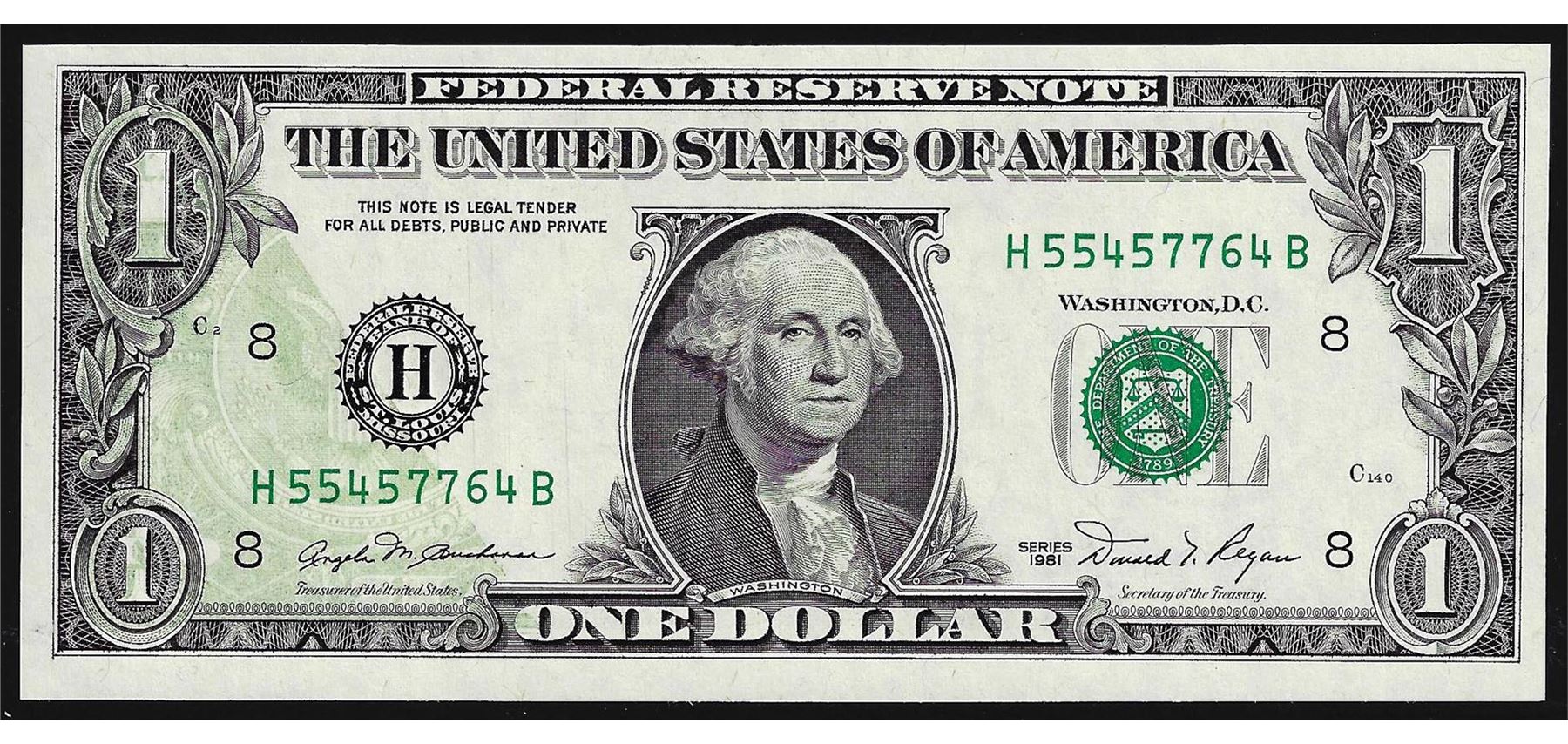 One 1981 $1 Federal Reserve Note Offset ERROR.