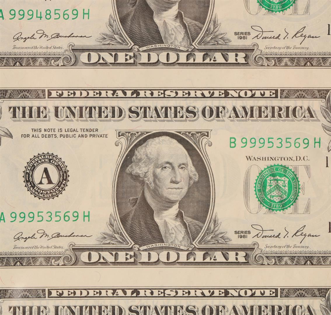 One 1981 $1 Sheet of (4) Federal Reserve Notes PCGS 67PPQ ERROR Mismatch Prefix, please note that even though this note was at one time graded it has since been removed from original sleeve to put into frame as shown in picture. PCGS Graded.