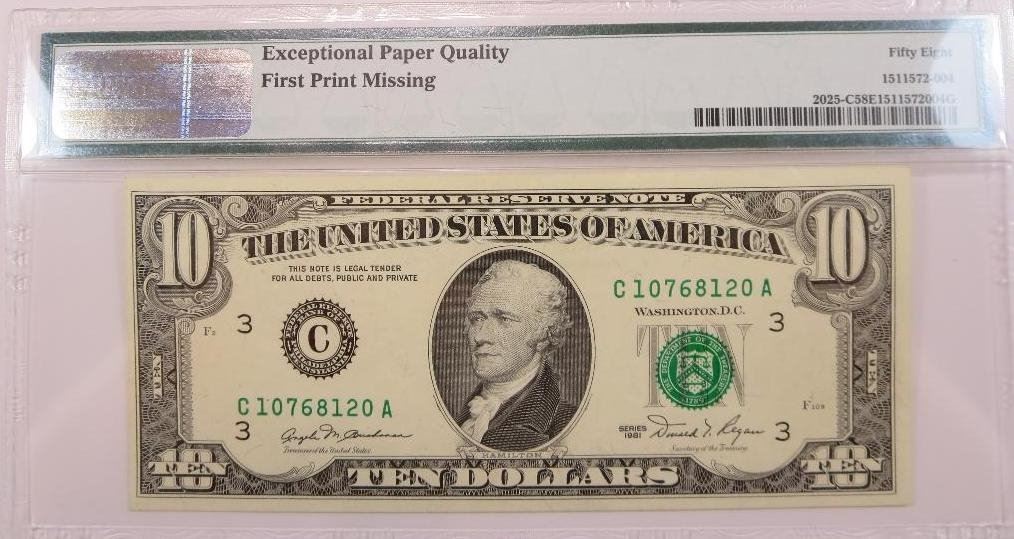 In accordance with the U.C.C. all auctions are considered to be reserve unless advertised as absolute, and during any reserve auction the auctioneer may accept bids from the seller or an agent of the seller. Items are sold 'AS IS', 'WHERE IS' with no guarantees of any kind (except for the authenticity of the item). Grading: Every person has their own opinion. It is the responsibility of the buyer to examine and grade to their own satisfaction before they bid. ABSOLUTELY NO ITEMS RETURNS ON THE BASIS OF GRADE. Buyers shall rely entirely on their own inspection and information. Returns: Internet buyers are entitled to a return within 3 days of receipt of items. In order to return an item, we must be notified of your intent to return within that 3 day period. An email should be sent to service@miy.com. After MIY's response with instructions for return. Items returned will be shipped at buyers expense. All returns are subject to a restocking fee of 15% of the purchase price with a minimum charge of $10. Shipping charges are not refundable. Items must be returned in the same holder and condition as they were sold to qualify for refund. Bidders are responsible for knowing which item they are bidding on. Bidder should inquire decline to bid if they are unsure of what they are bidding on. Once you have won the bid you have effected a contract and will be expected to pay for the item. The auctioneer reserves the right to accept bids in any increment he feels is in the best interests of his clients, the seller. Bidders are responsible any taxes or fees imposed by their state . MIY.com is providing Internet pre-auction and live bidding as a service to Bidder. Bidder acknowledges and understands that this service may or may not function correctly the day of the auction. Under no circumstances shall Bidder have any kind of claim against MIY.com or anyone else if the Internet service fails to work correctly before or during the live auction. MIY.com reserves the right to withdraw or re-catalog items in this auction.