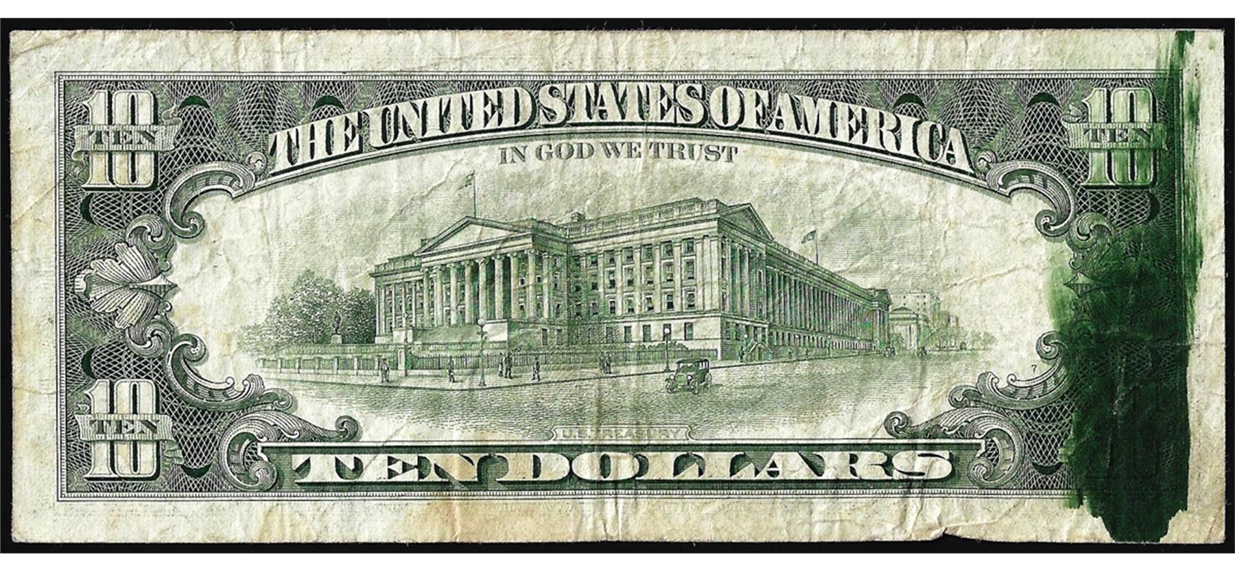 One 1981 $10 Federal Reserve Note New York Ink Smear ERROR.