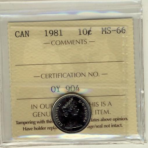 1981 10¢ ICCS MS66. Solo 1 listed in POP report.