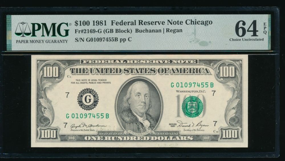 One 1981 $100 Chicago FRN PMG 64EPQ.