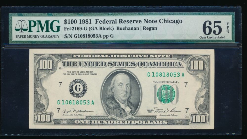One 1981 $100 Chicago FRN PMG 65EPQ.
