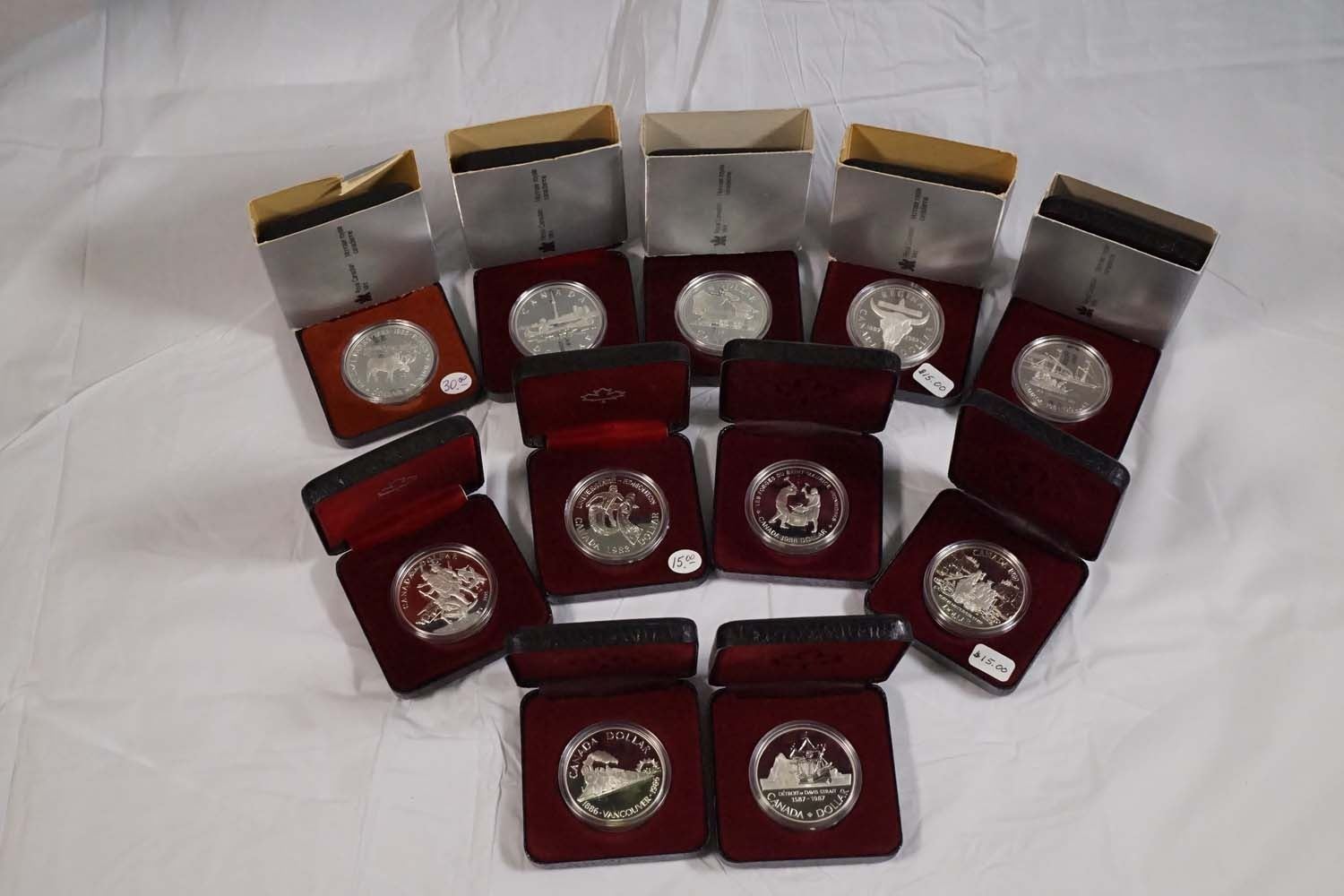 1981-1991 A Lot of 11 x$1.00 Proof Silver Dollars .500 AG Encapsulated w/o COA