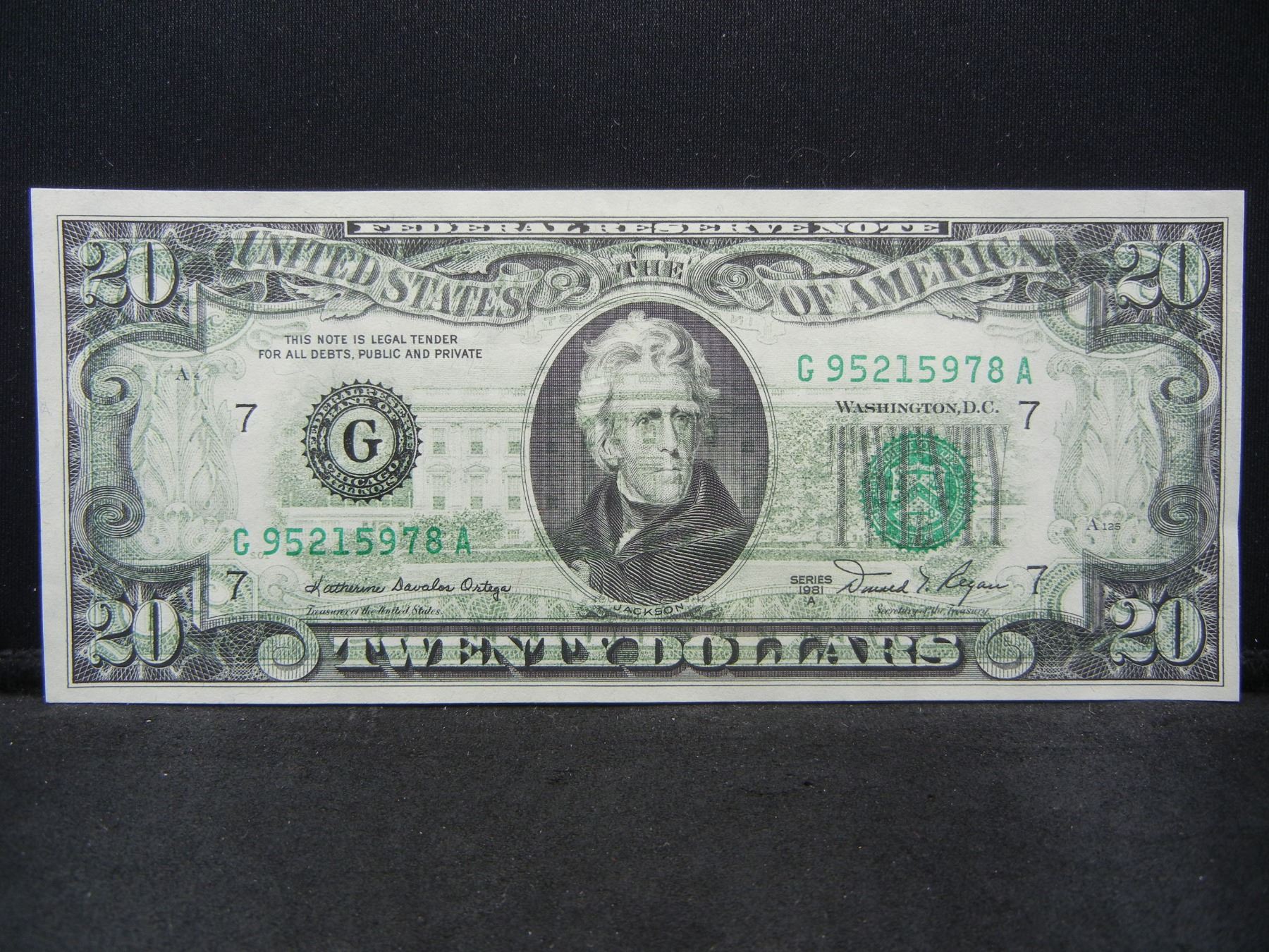 1981 $20.00 Federal Reserve Note Wet Plate Transfer Ink Erroe Crisp Note!! Super Cool!