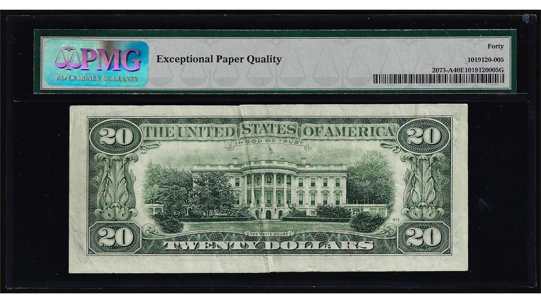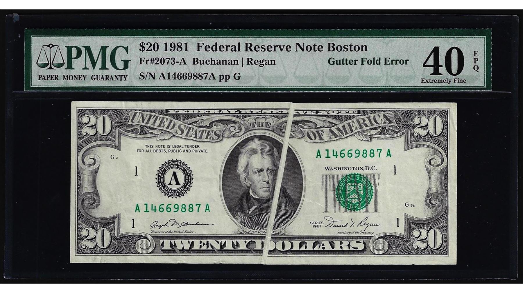 One 1981 $20 Federal Reserve Note Boston Gutter Fold Error PMG Extremely Fine 40EPQ. PMG Certified.