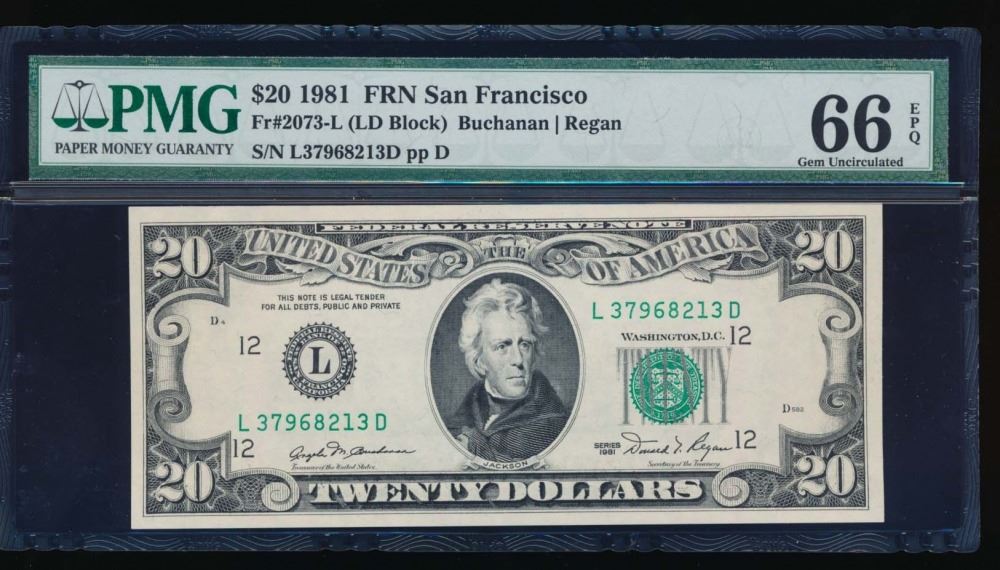 One 1981 $20 San Francisco Federal Reserve Note PMG 66EPQ.