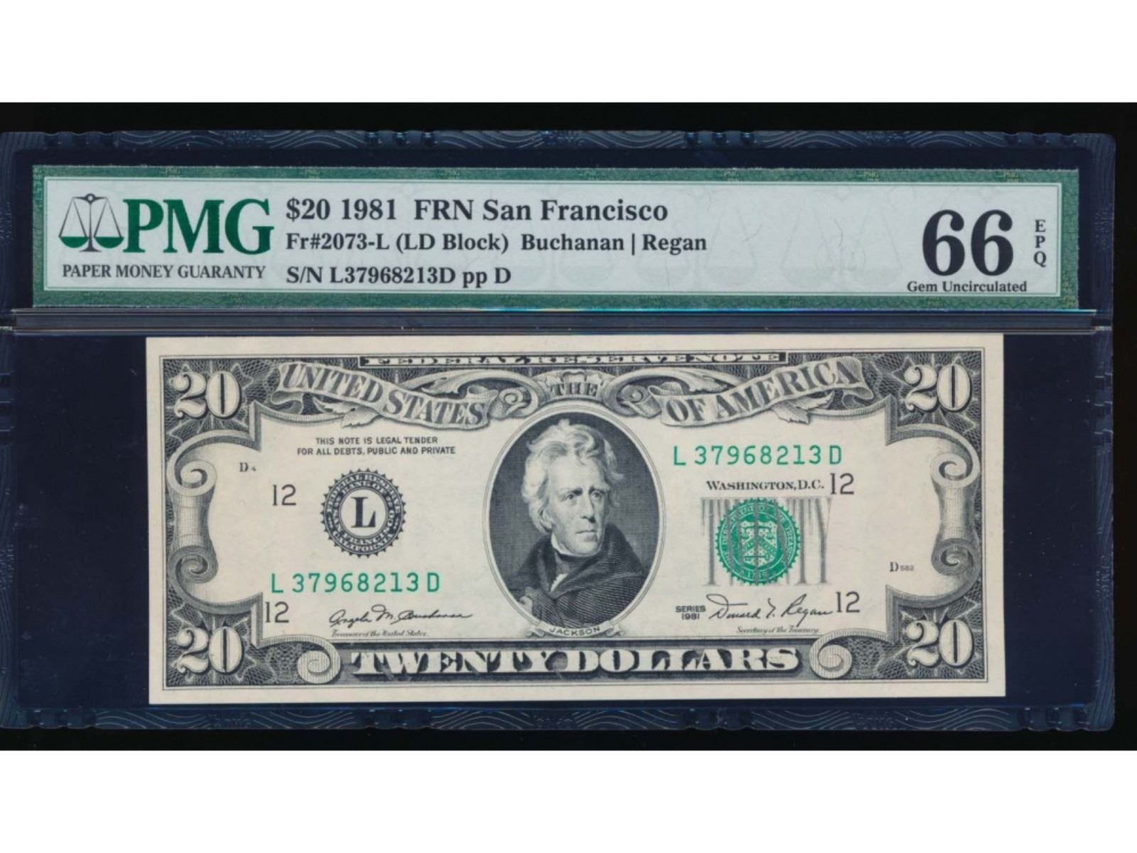 One 1981 $20 San Francisco Federal Reserve Note PMG 66EPQ.