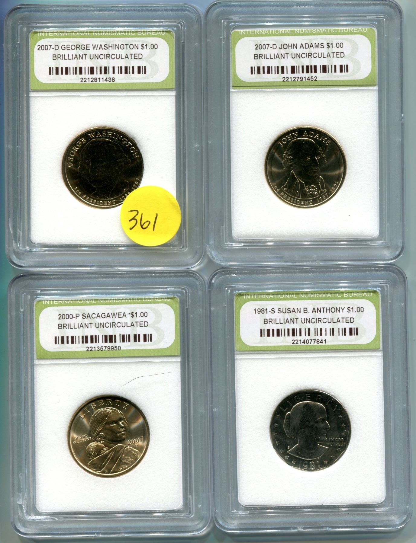 Susan B. Anthony, Sacagawea, Washington, Adams