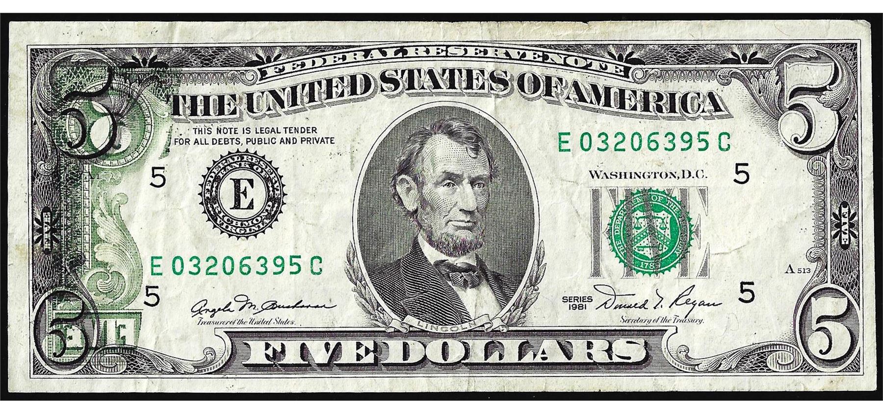 One 1981 $5 Federal Reserve Note Partial Offset Error.