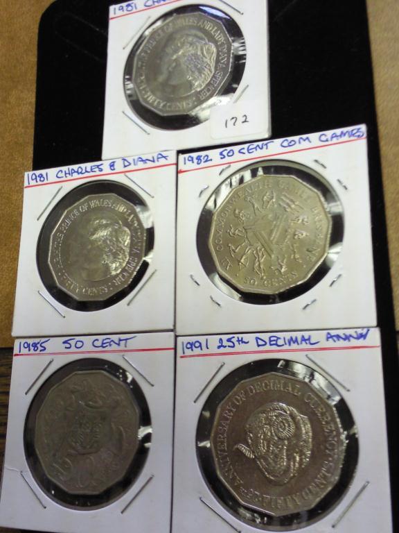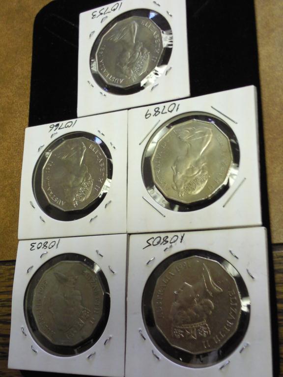 1981, 81, 82, 85 & 91 AUSTRALIA 50 CENTS (UNC)