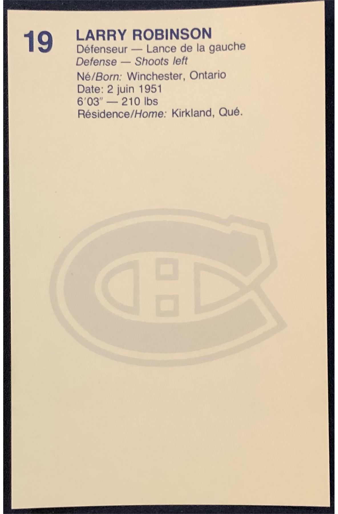1981-82 MONTREAL CANADIENS POST CARDS - LARRY ROBINSON (HOF)