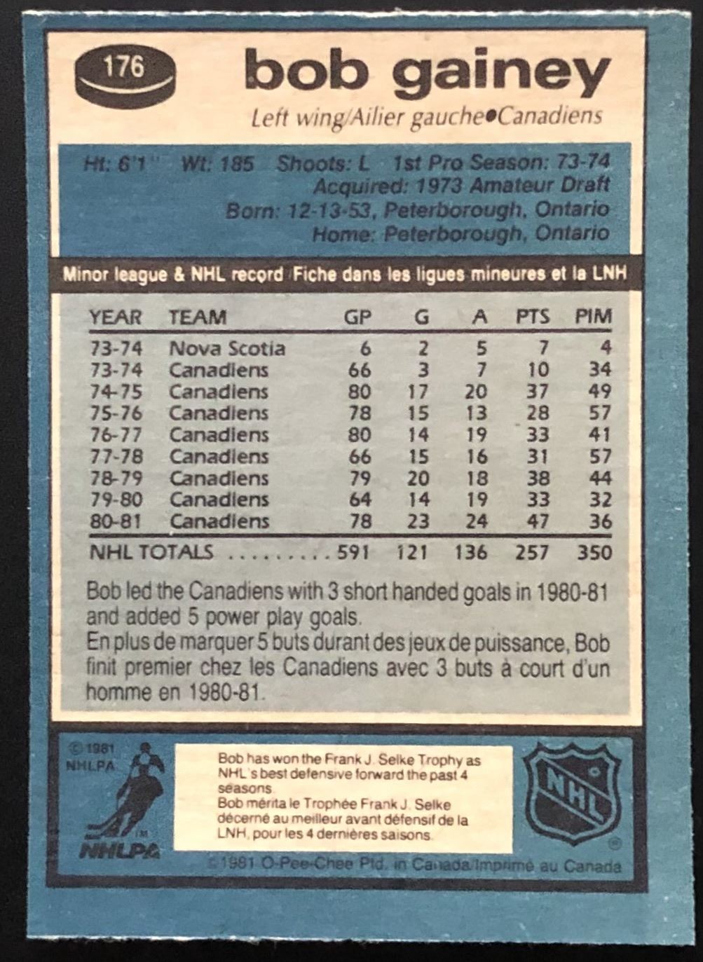 Card #176 OPC, vintage, NHL, hockey, hall of fame