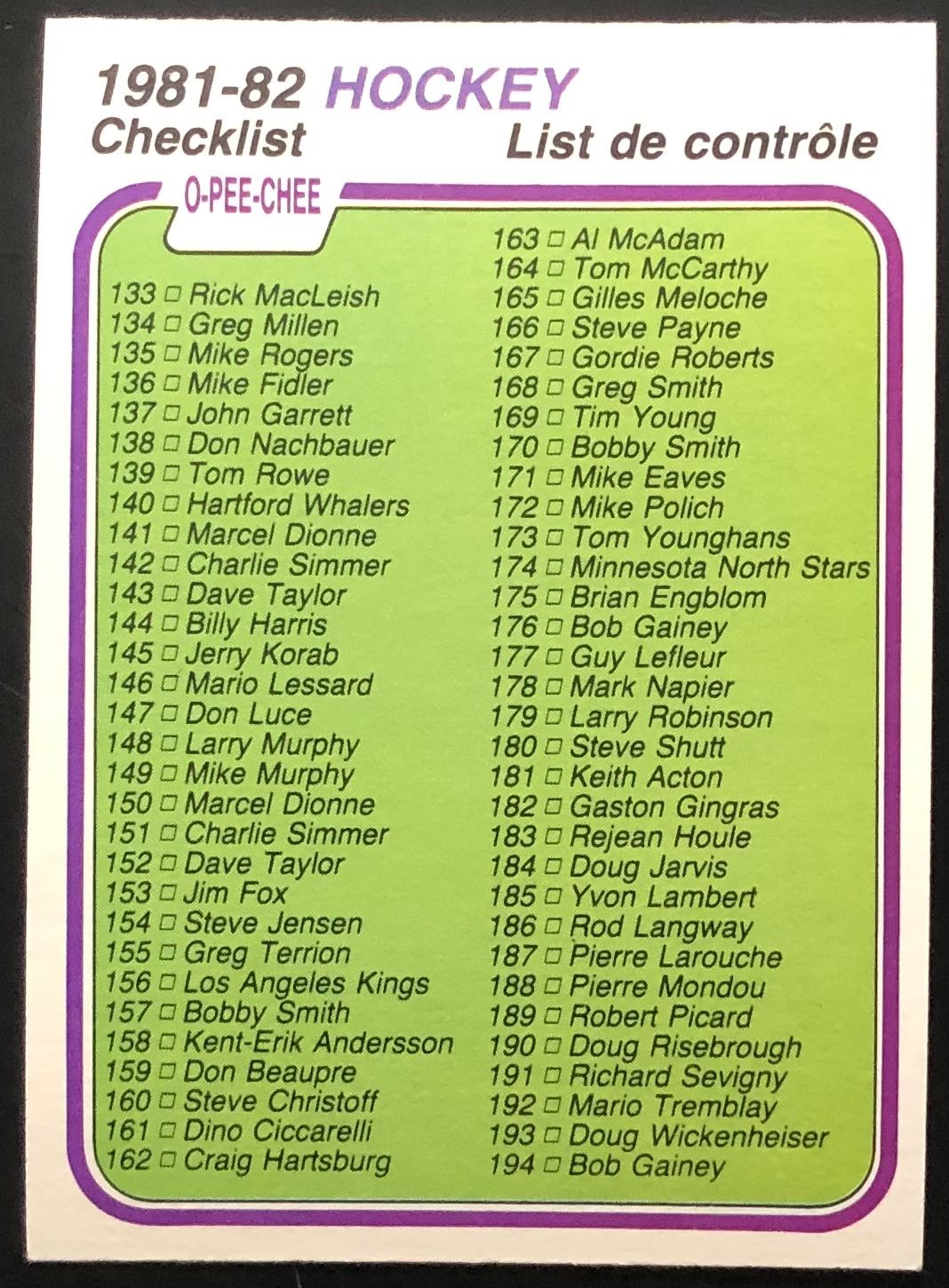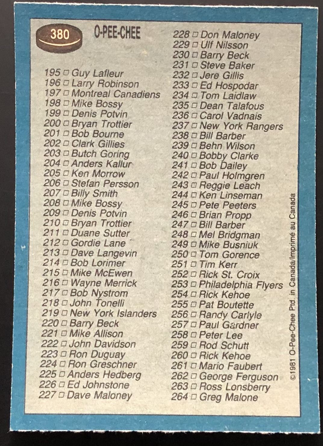Card #380 NHL, hockey, OPC, vintage