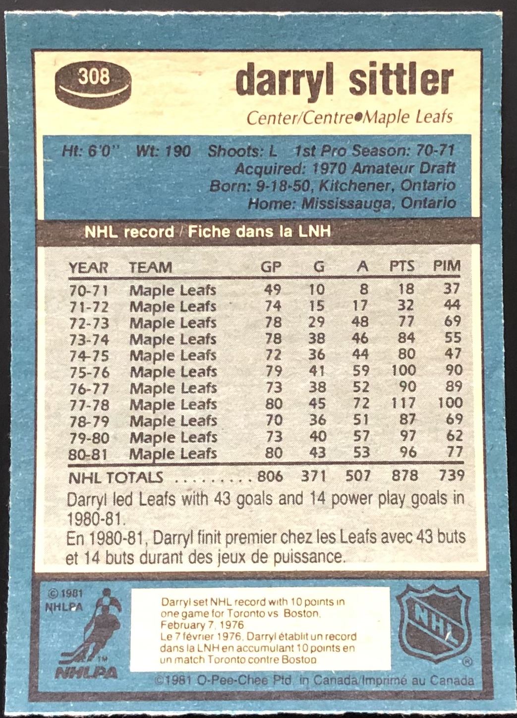 Card #308 NHL, hockey, OPC, vintage, hall of fame