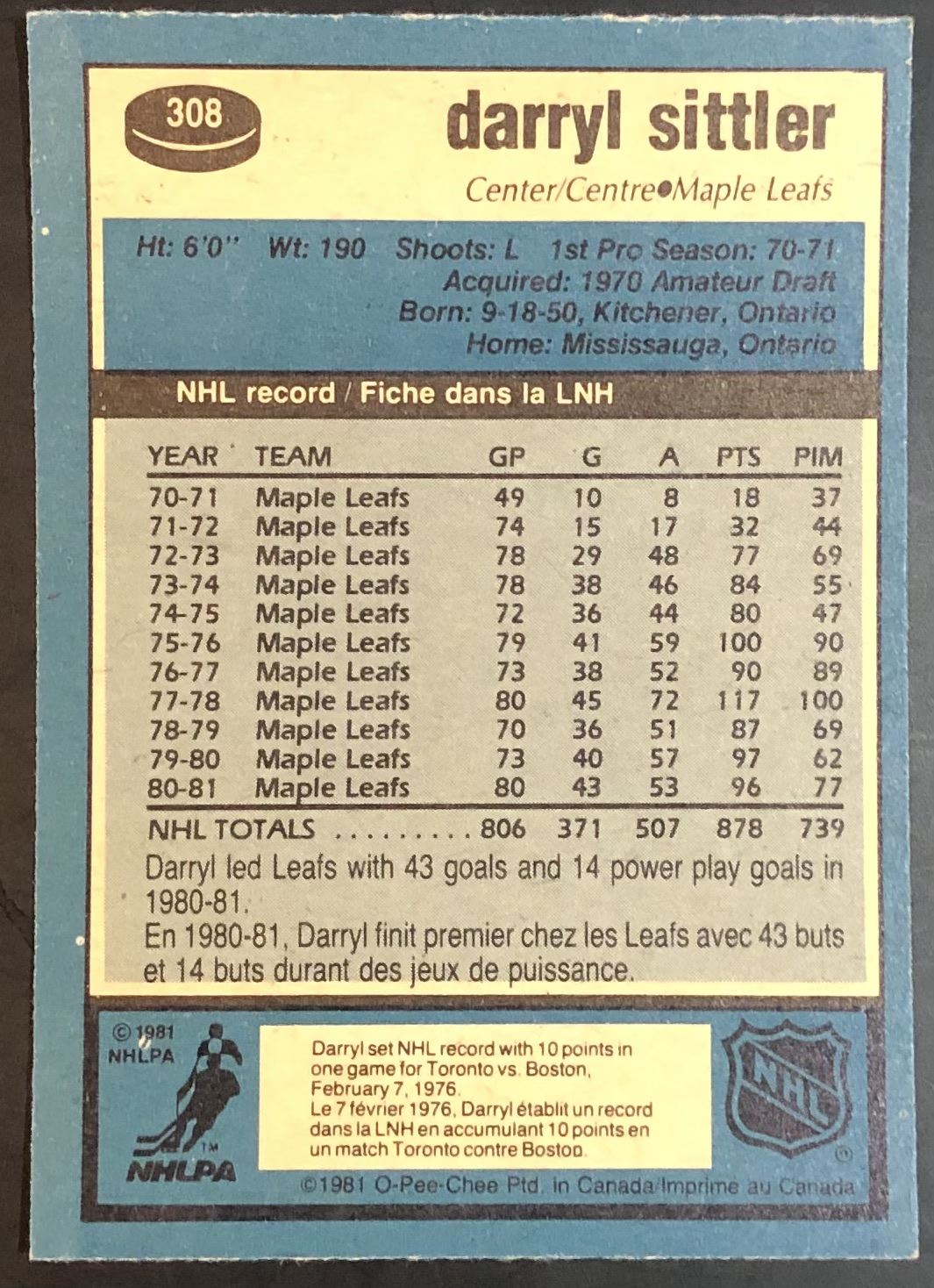 Card #308 OPC, NHL, hockey, vintage, hall of fame
