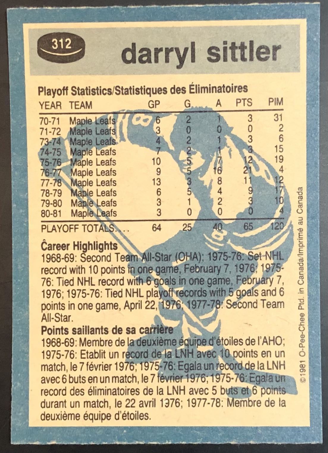Card #312 NHL, hockey, OPC, vintage, hall of fame