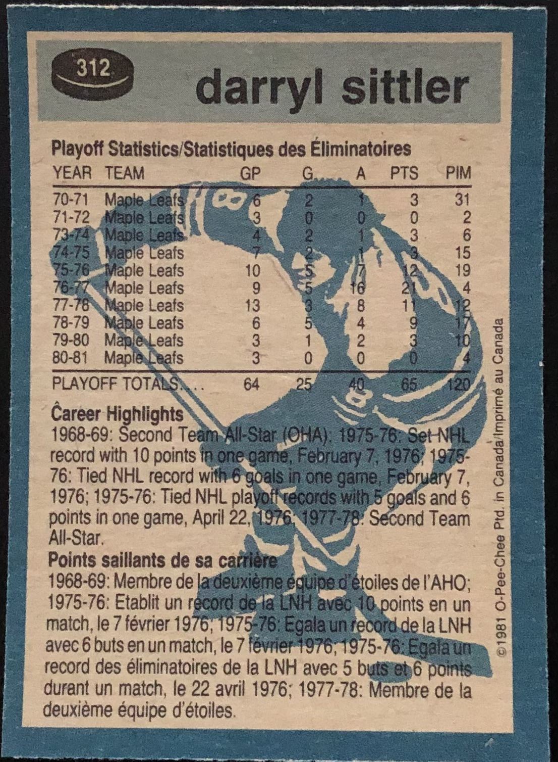 Card #312 hockey, NHL, vintage, OPC, hall of fame