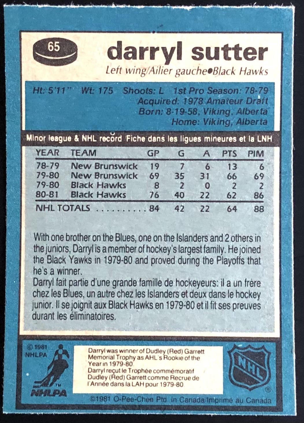 Card #65 NHL, hockey, vintage, OPC, rookie