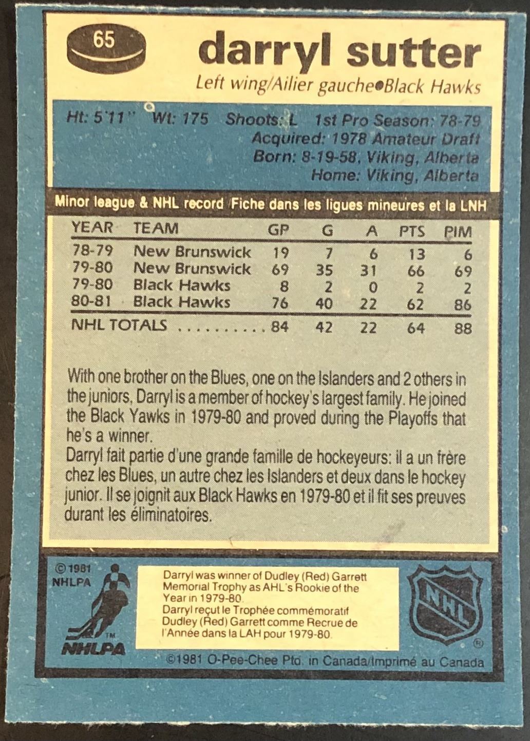 Card #65 hockey, NHL, vintage, OPC, rookie